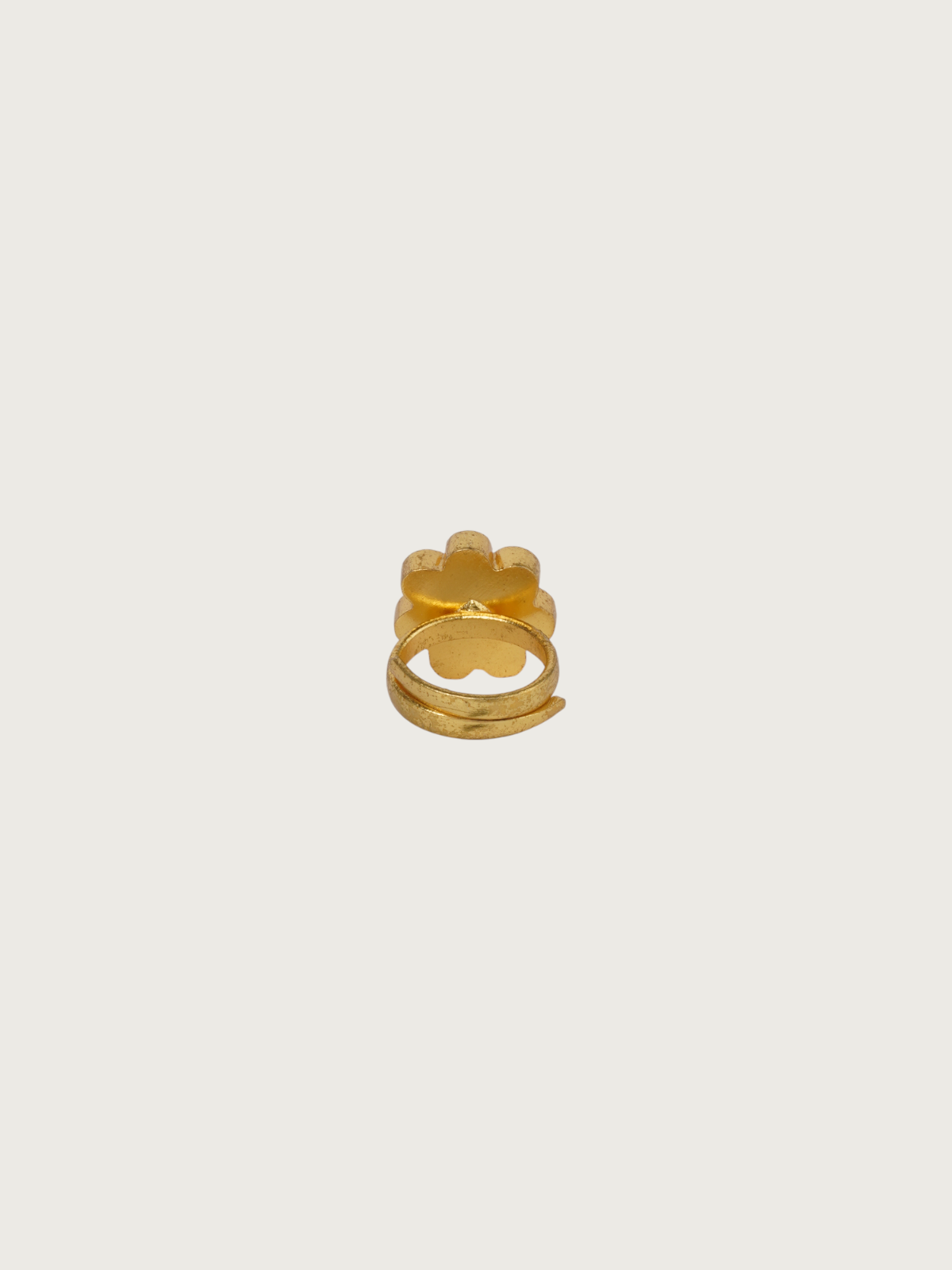 Radiate charm with this stunning gold-plated ring, shaped into an elegant floral motif. Designed with eight symmetrical kundan-set petals surrounding a central round kundan, this piece blends traditional artistry with timeless beauty. The delicate beaded edge on the setting enhances the richness of the floral form, giving it a refined allure.