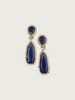 These handcrafted gold-plated earrings feature bold blue drops framed with diamond-like detailing that catches the light beautifully. The dual-drop design combines a smaller teardrop top with an elongated drop, both edged in sparkling accents for a refined, statement finish.