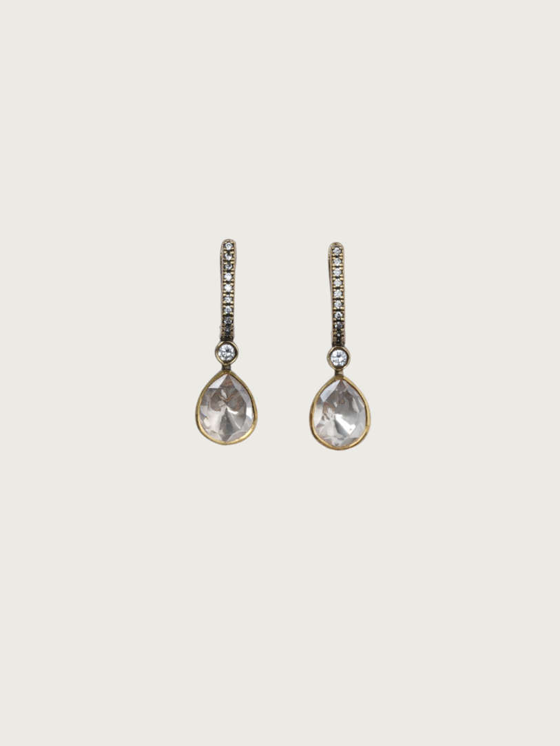 These dainty teardrop earrings bring effortless charm and sparkle to your look. Crafted in a sleek victorian-toned finish with a sterling base (SL925), the design features a vertical row of glistening white stones leading to a beautifully faceted teardrop-shaped clear stone drop.