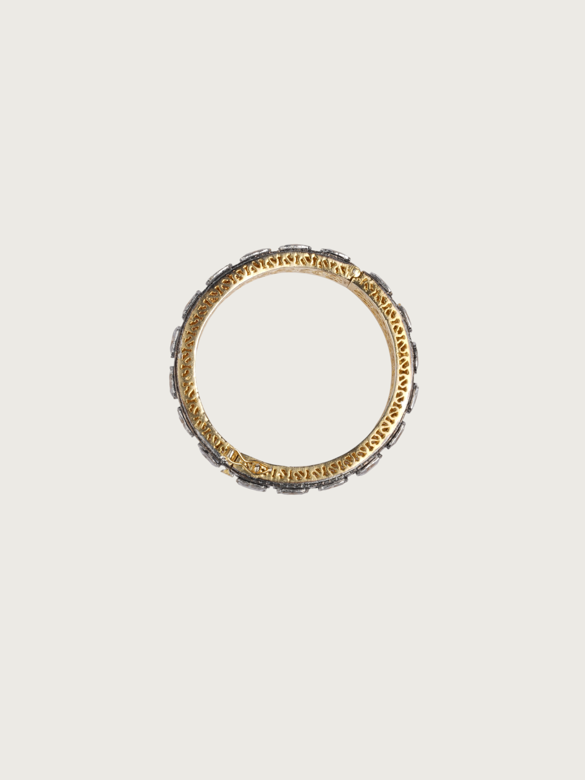 The inner gold filigree pattern enhances its luxurious character, making it a statement accessory that exudes understated opulence. Perfect for adding depth and texture to any ensemble, this bangle captures the elegance of heritage craftsmanship in a modern structure.