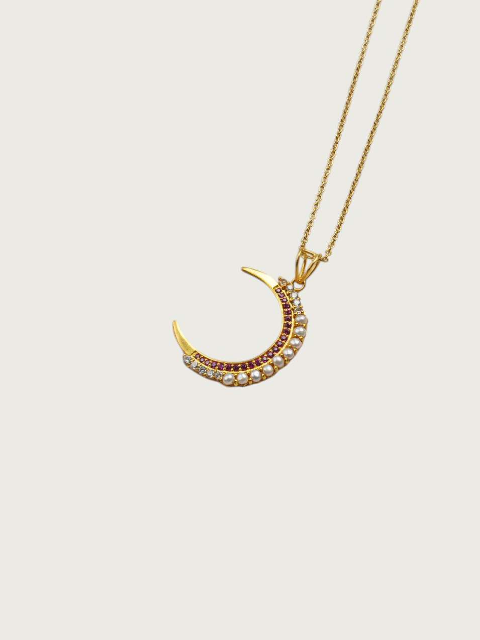 Inspired by the celestial beauty of the moon, this handcrafted necklace features a crescent-shaped pendant. The gold-plated finish enhances its timeless charm, making it a sophisticated addition to any collection.