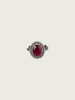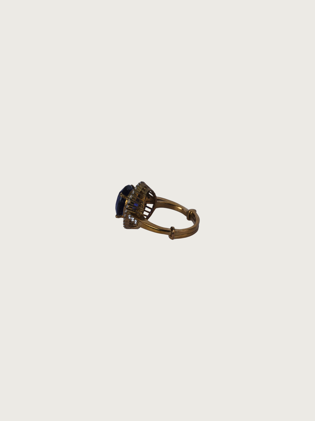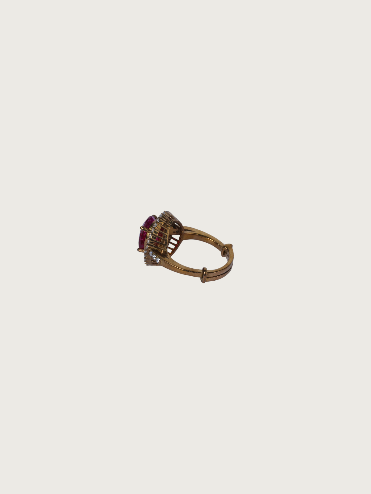 A celebration of elegance and timeless Victorian design, these statement rings feature richly hued center stones – one a deep royal blue and the other a dark pink – encased in a sparkling halo of clear white stones. The antique victorian plated ring is carefully textured, giving each piece a vintage allure with a modern edge.