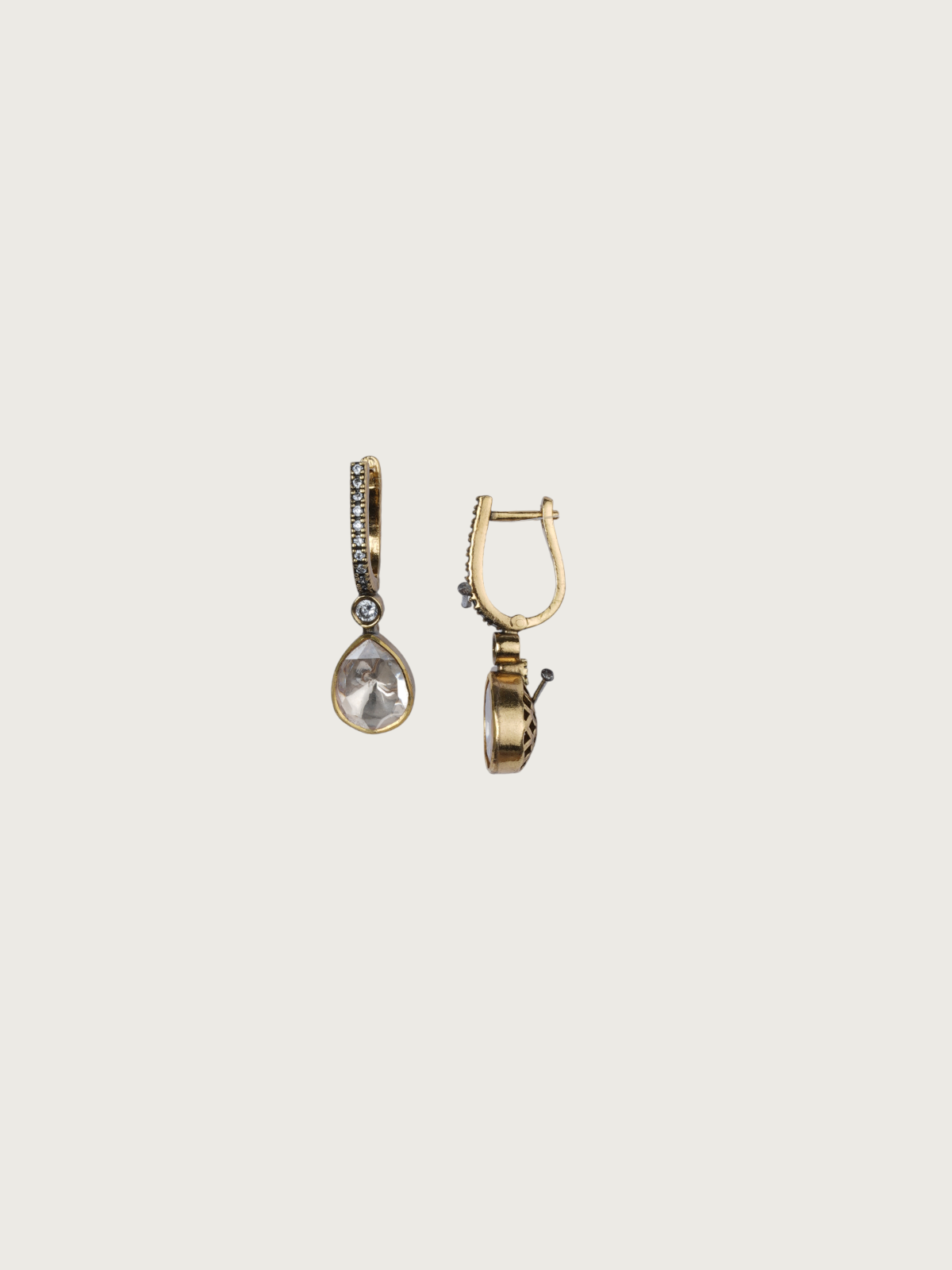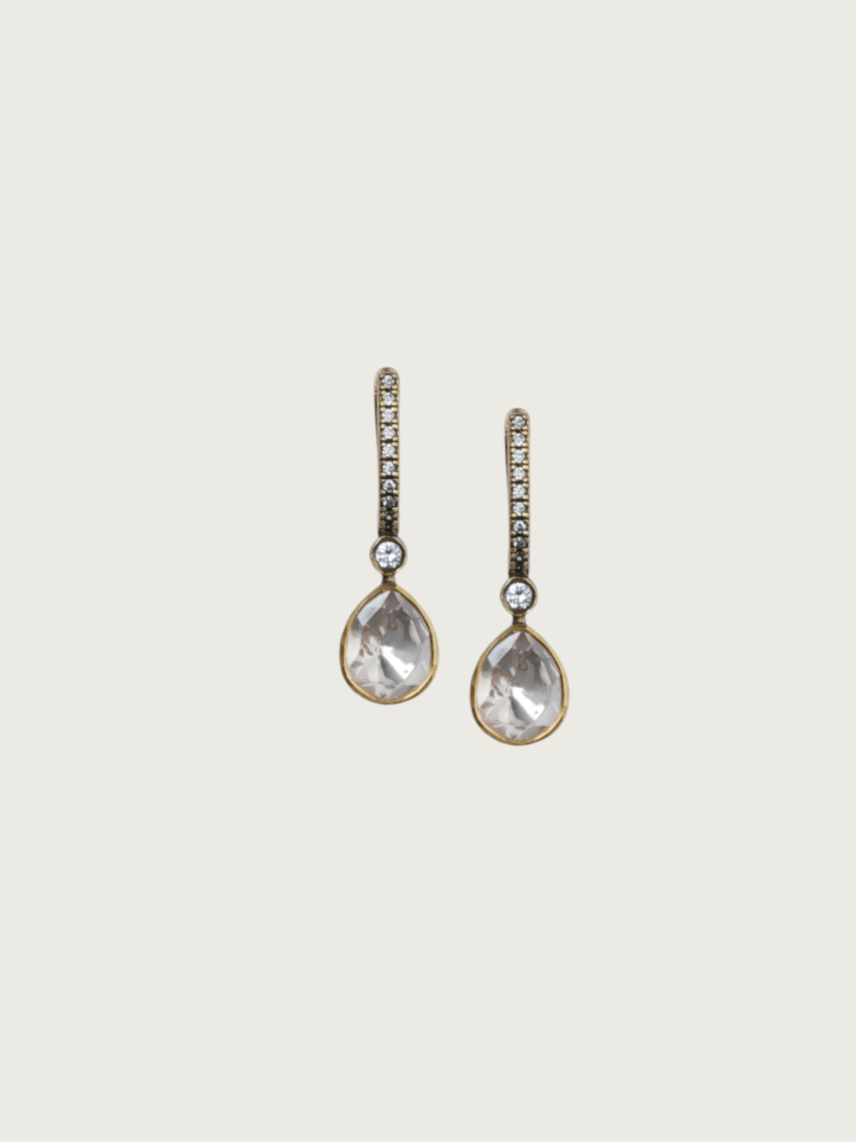 These dainty teardrop earrings bring effortless charm and sparkle to your look. Crafted in a sleek victorian-toned finish with a sterling base (SL925), the design features a vertical row of glistening white stones leading to a beautifully faceted teardrop-shaped clear stone drop.