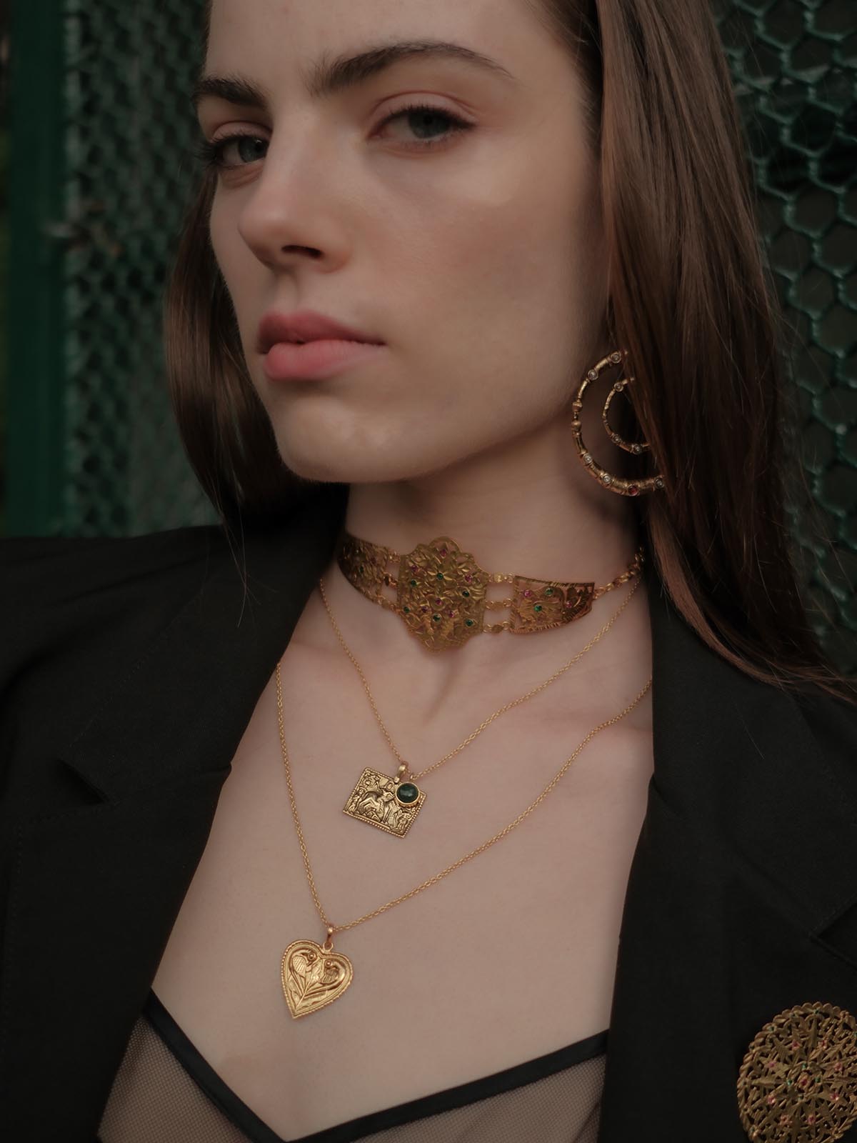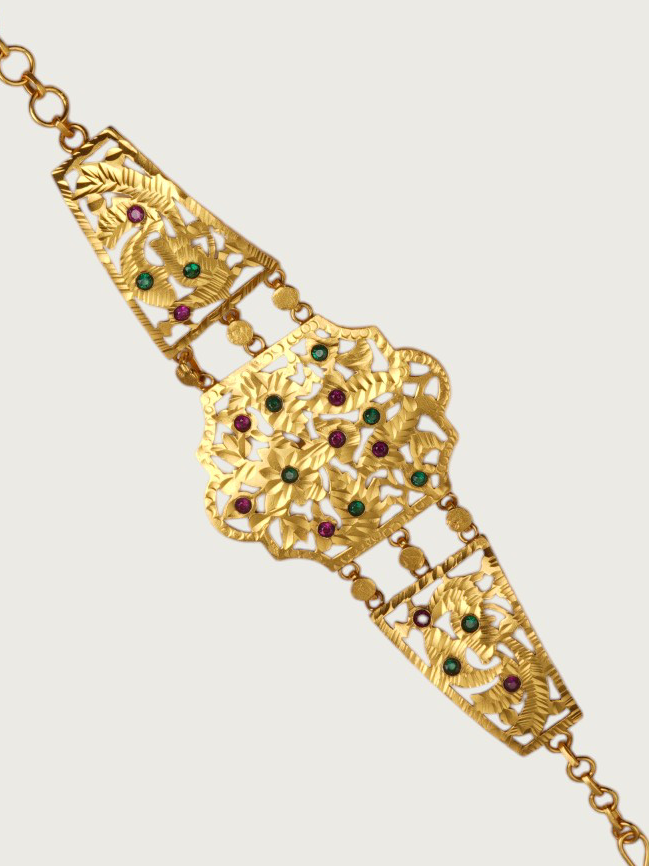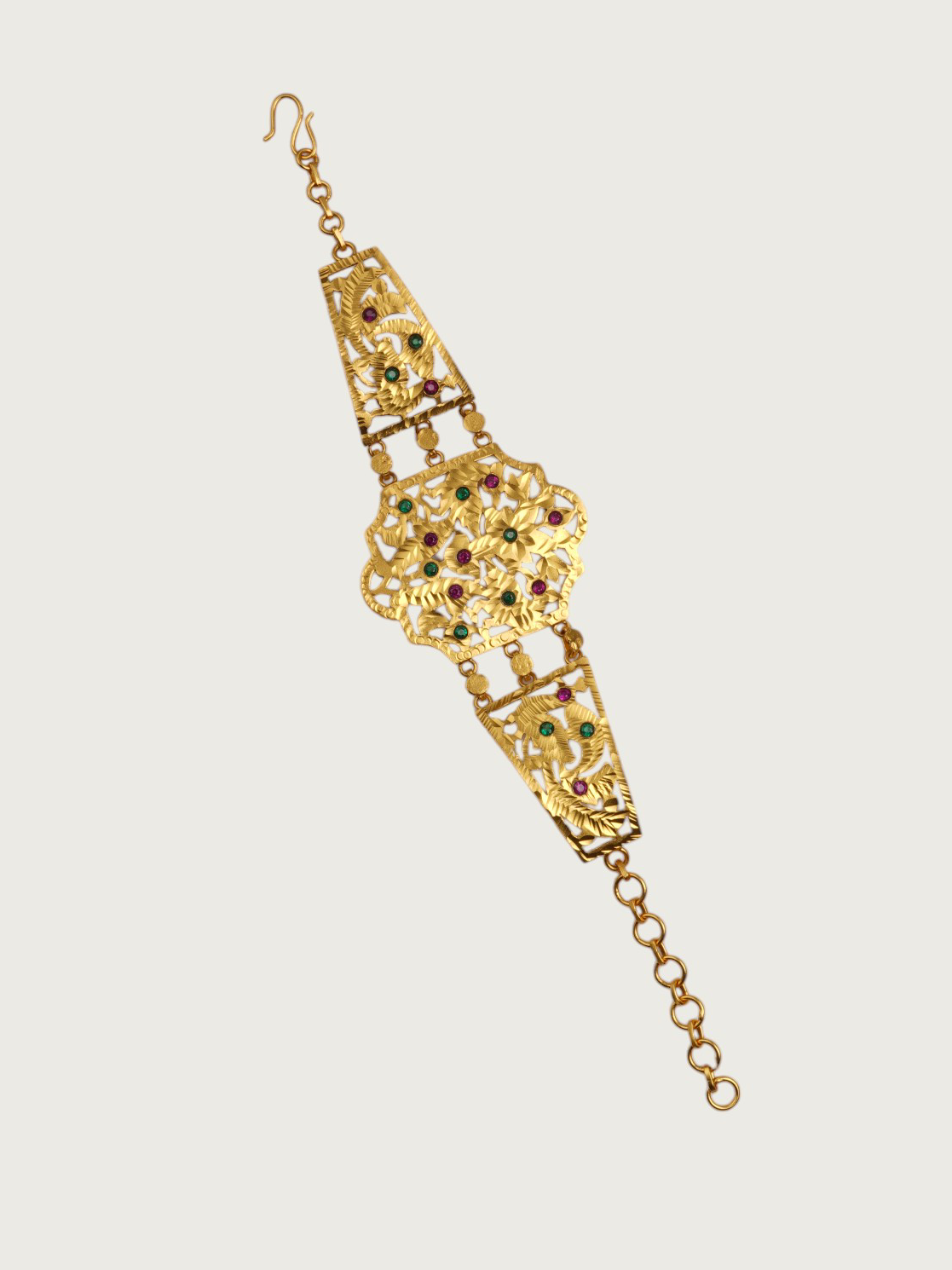 The Floral Filigree Gold-Plated Necklace showcases exquisite craftsmanship with its intricate floral patterns and vivid multicolored accents. Made with high-quality gold plating, this lightweight necklace is perfect for adding a touch of classic elegance to your look.