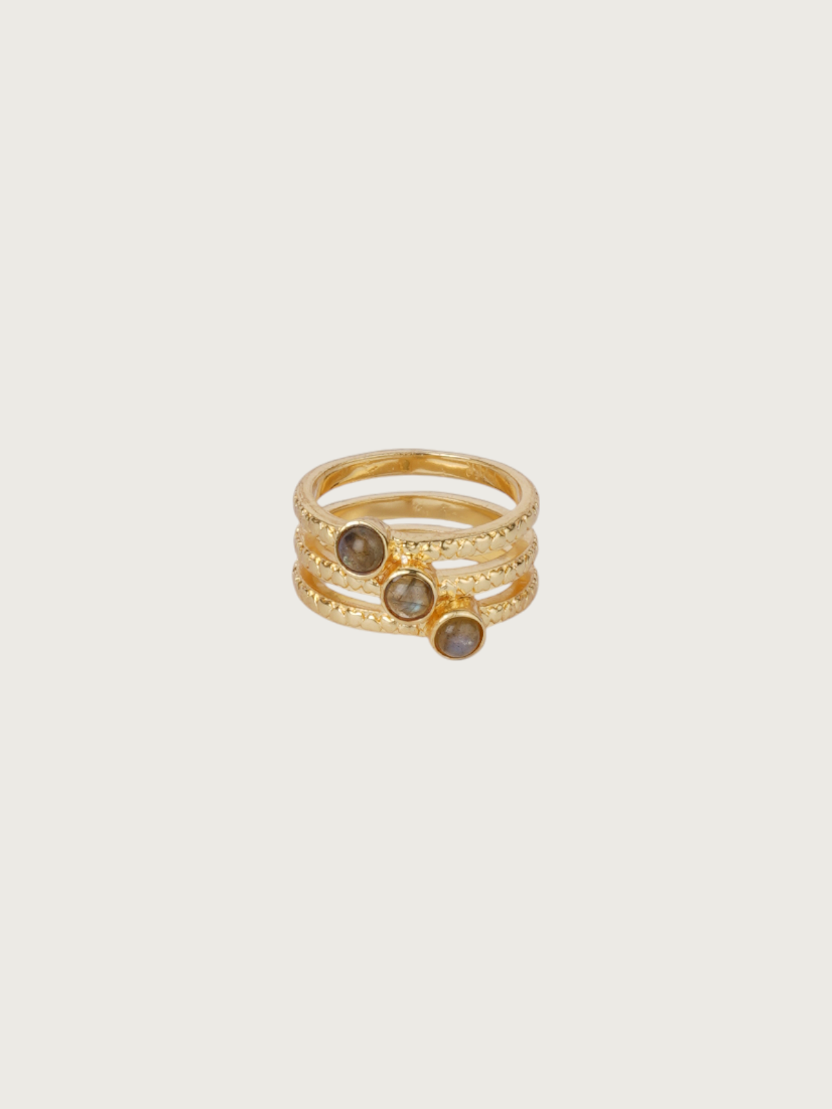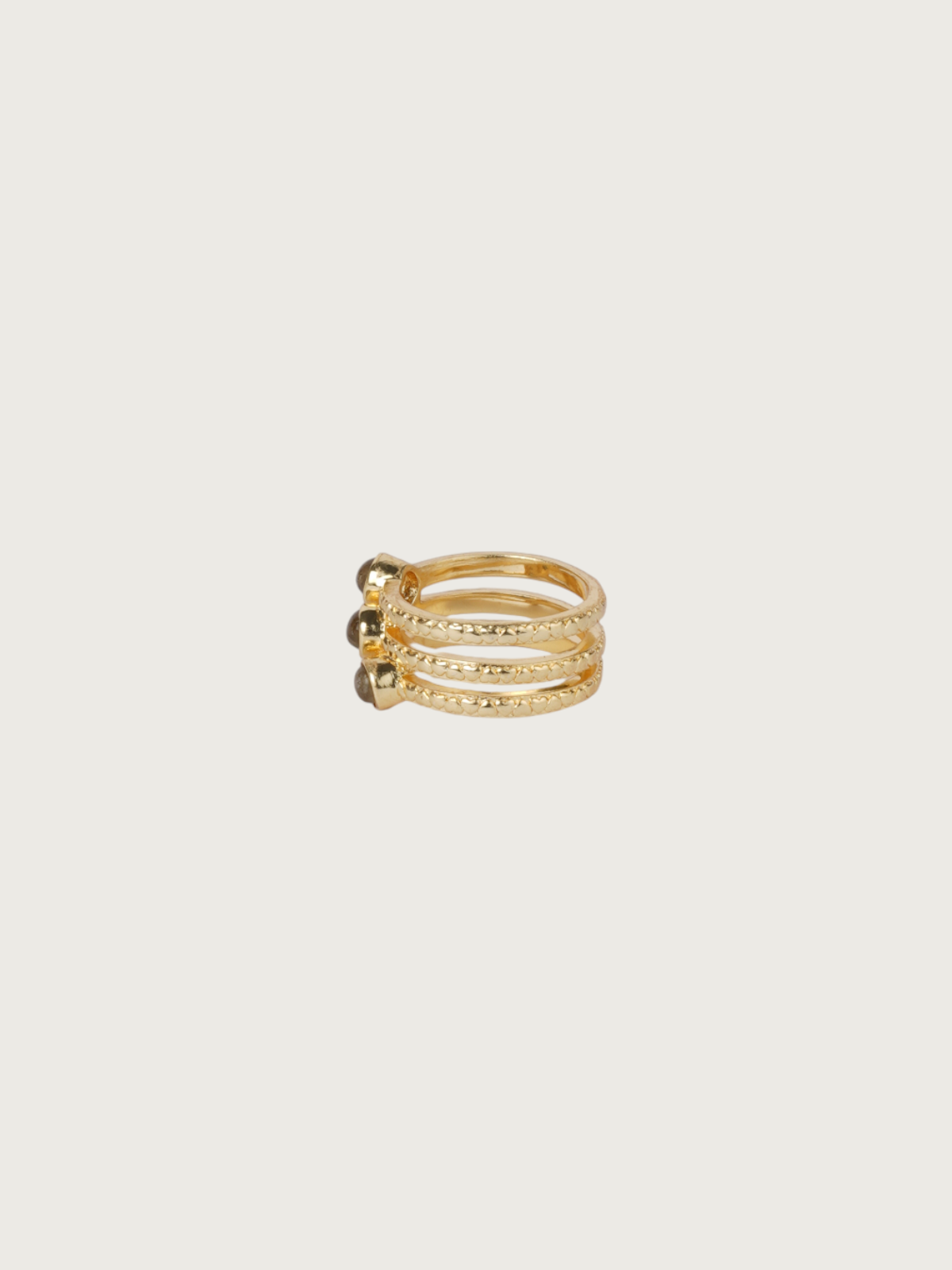 The bands are lightly textured for artisanal detail, while the smooth stones add a radiant glow. Whether worn solo for a minimal vibe or layered with other pieces, this piece is effortlessly versatile. Its lightweight design and comfortable fit make it perfect for all-day wear.