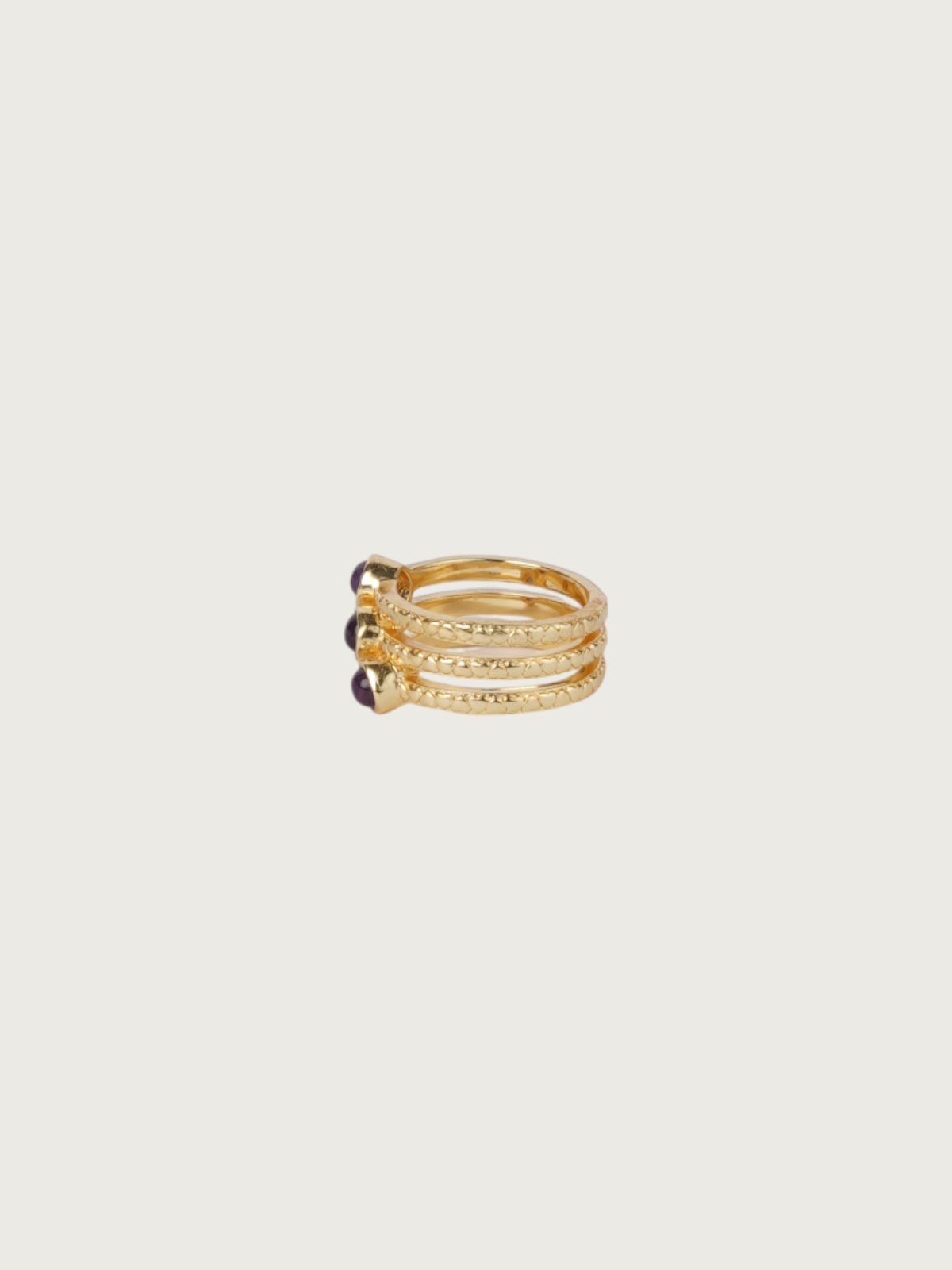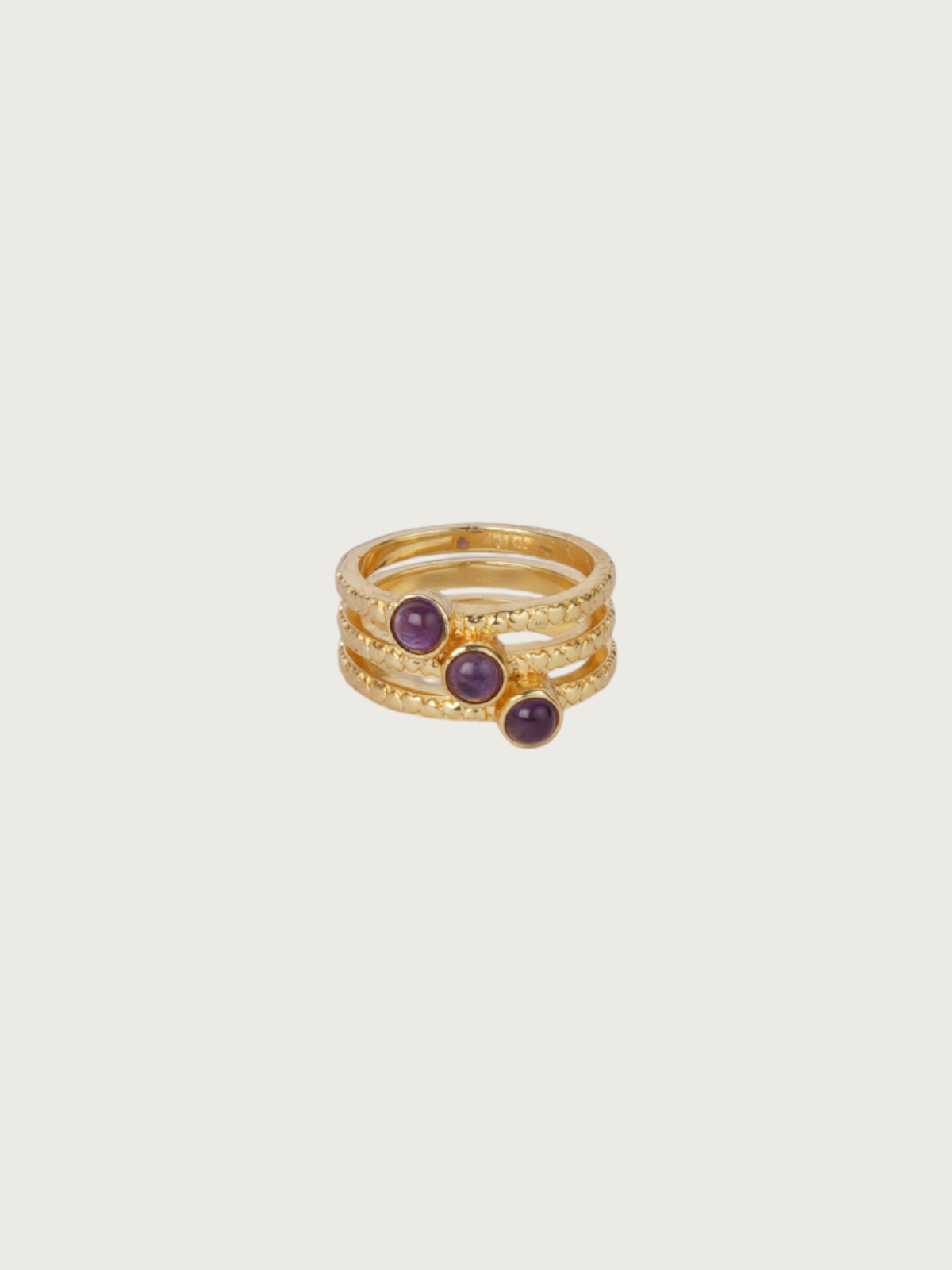 Elevate your everyday ring stack with this playful and elegant gold-plated triple-band ring. Featuring three delicately stacked bands with bezel-set colored stones—available in hues like grey, purple, baby pink, white, and dark green—each variant brings a fresh pop of charm to your look.