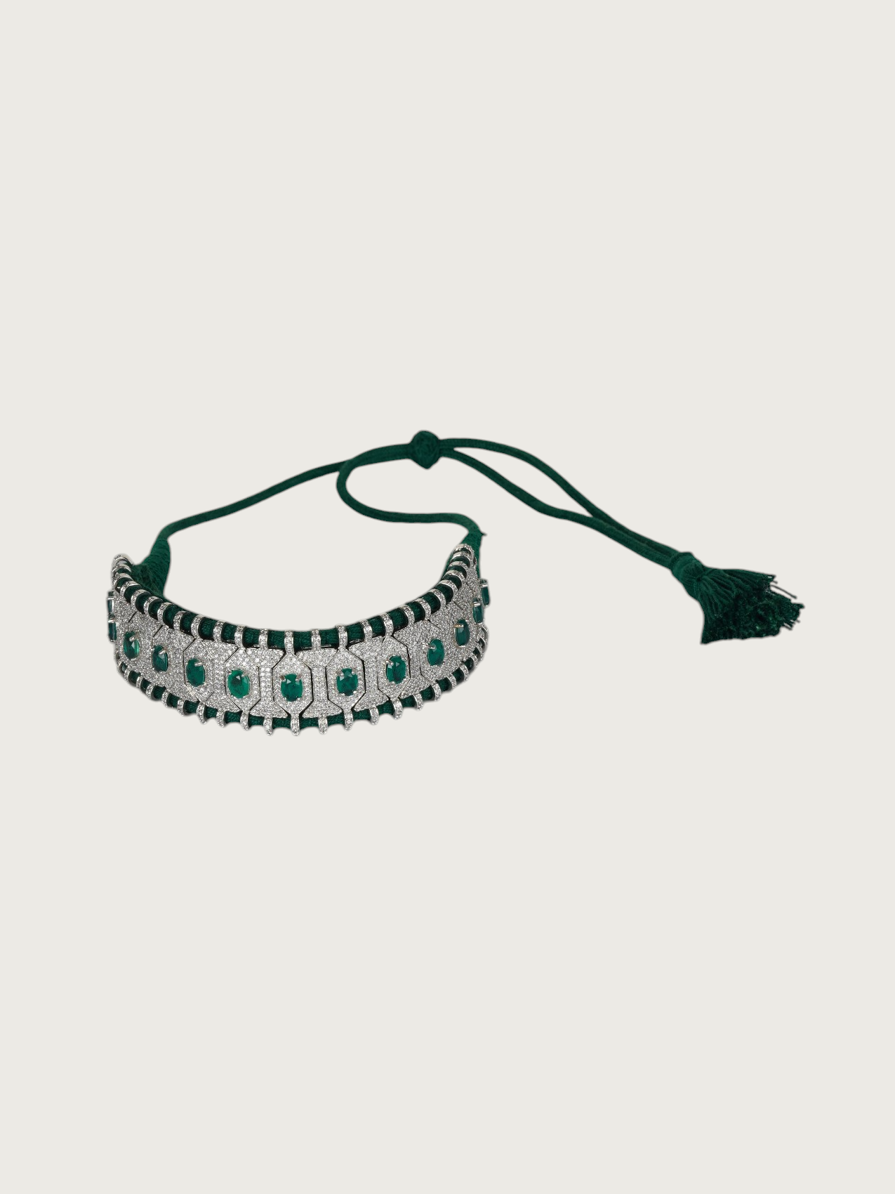 Elevate your style with this Mughal-Inspired Adjustable Choker, a stunning piece crafted to reflect the elegance of Indian royal jewelry. Designed with intricate detailing, this choker features an ornate structure with delicate embellishments, exuding a regal charm. The adjustable thread closure ensures a perfect fit for any neckline, making it a versatile addition to your jewelry collection.