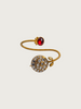 A captivating fusion of elegance and tradition, this adjustable bracelet features a rich red cabochon stone on one end and a circular floral kundan setting on the other. The intricately twisted gold-plated band creates a coiled effect, offering both a bold silhouette and comfortable fit. Designed with an open-ended style for easy wear, this piece beautifully balances antique charm and contemporary ease.
