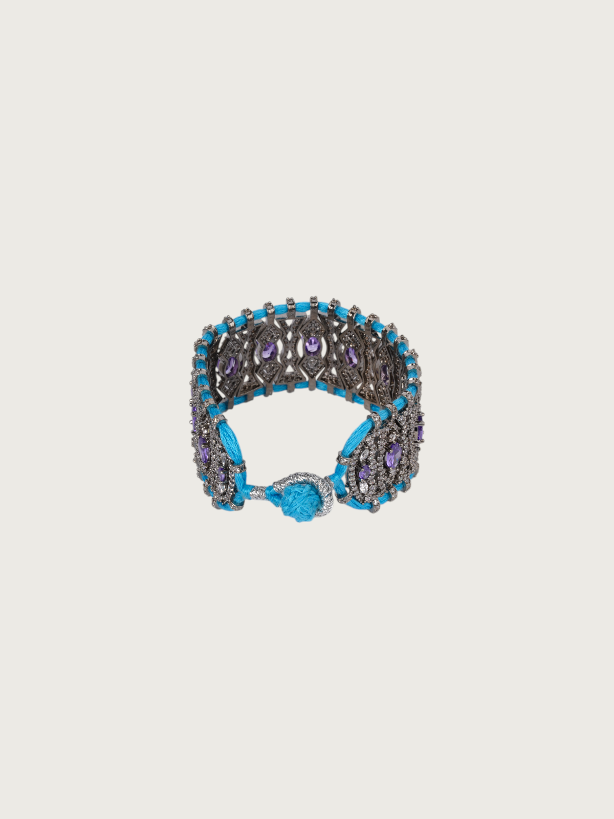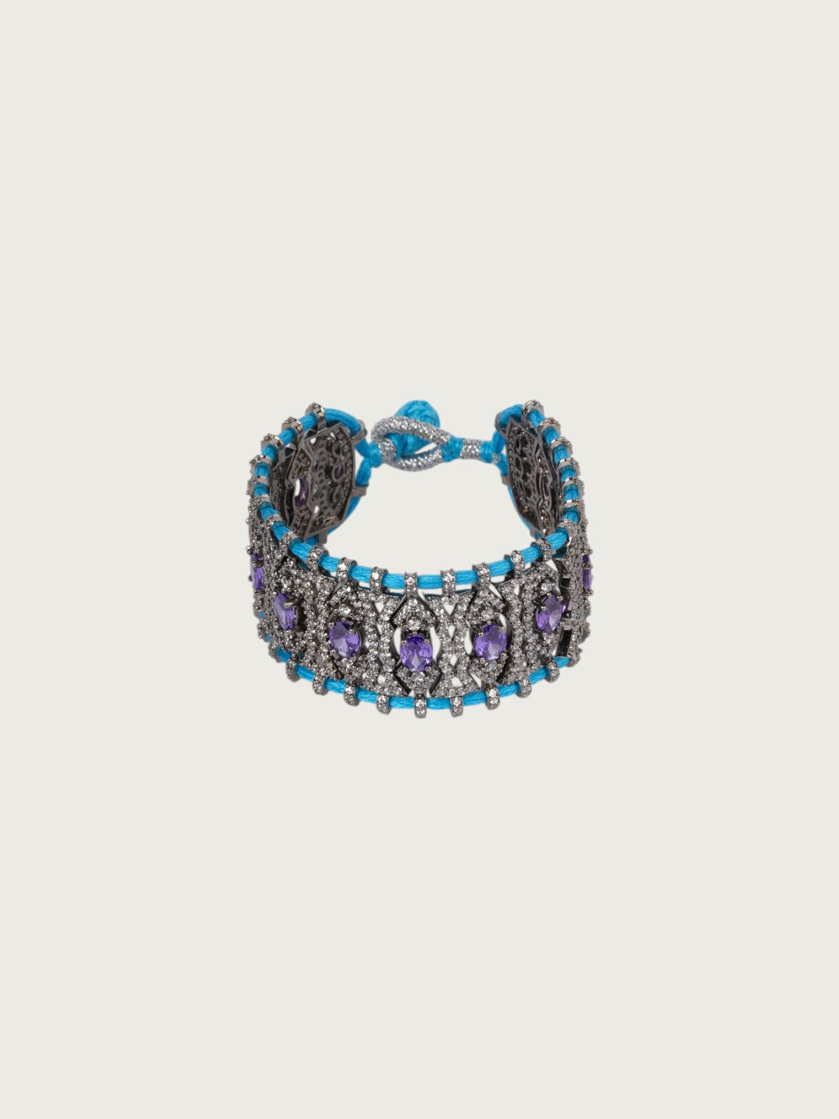 Add a vibrant touch to your everyday style with Tver’s handcrafted collection of colorful thread bracelets. These adjustable beauties feature a striking victorian-toned base adorned with sparkling stones in vivid hues like dark green, purple. Each bracelet is meticulously wrapped in colorful threads, enhancing the contrast between bright hues and oxidized metal.