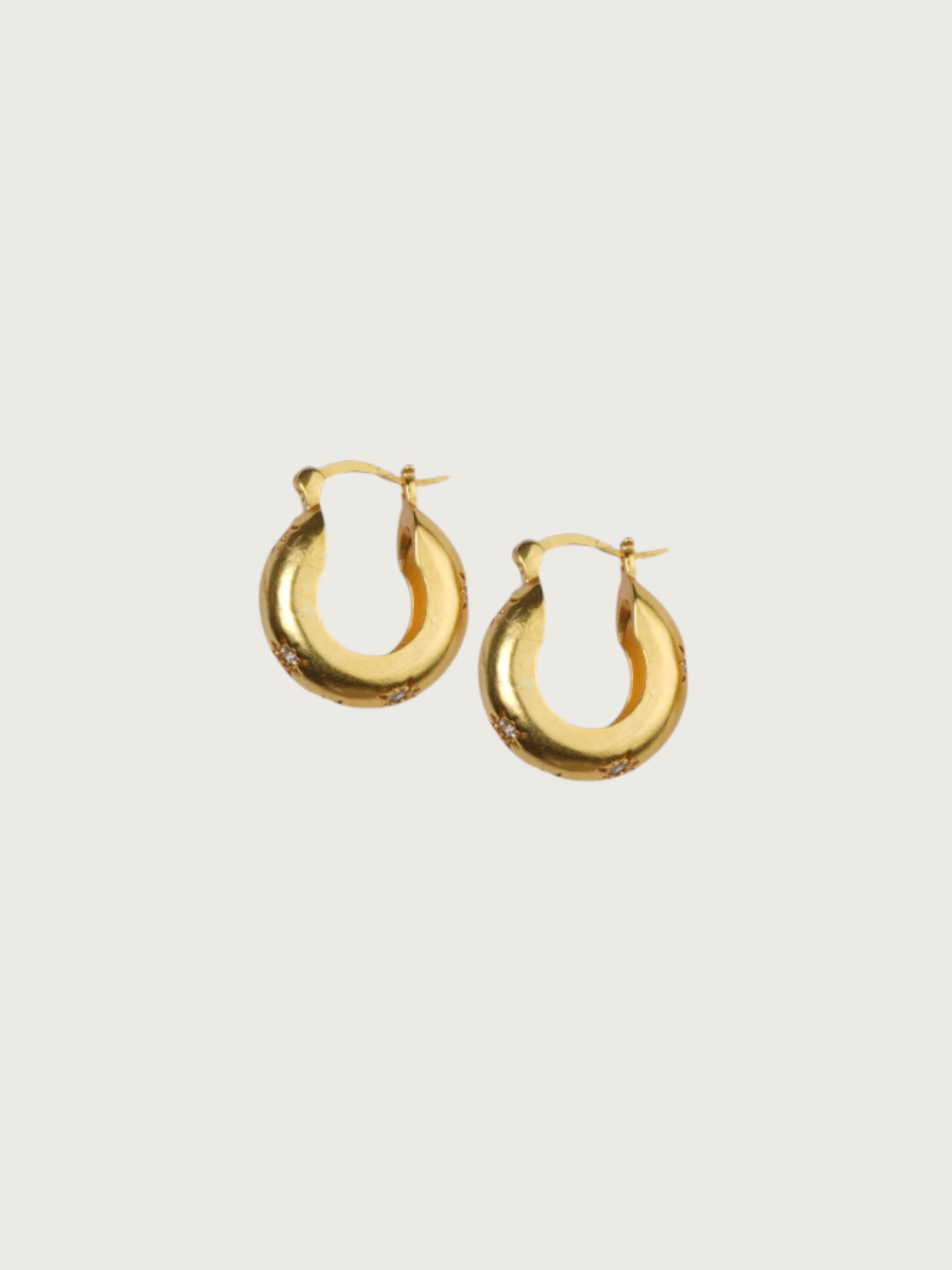 Whether paired with a classic white shirt or layered with statement pieces, these hoops are a staple addition to your accessory rotation. Made with high-quality materials and finished in a radiant gold tone, they offer long-lasting shine with a contemporary twist.