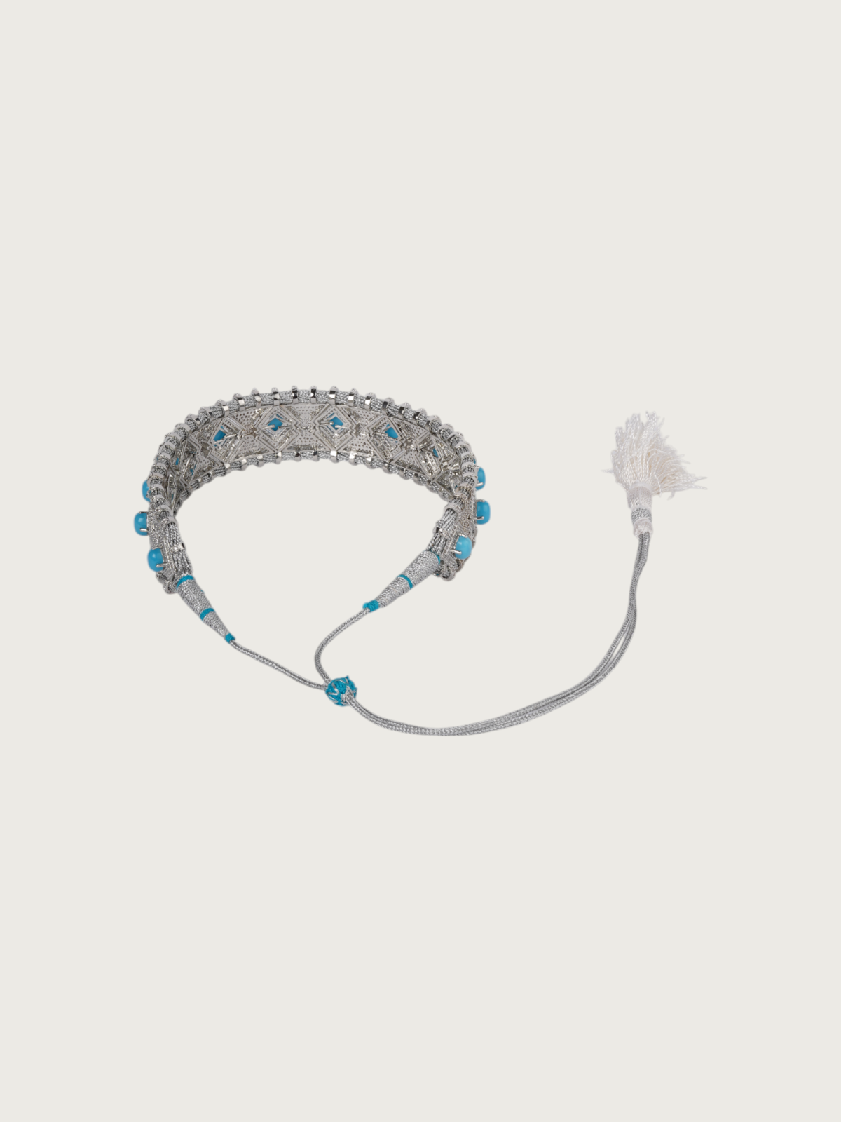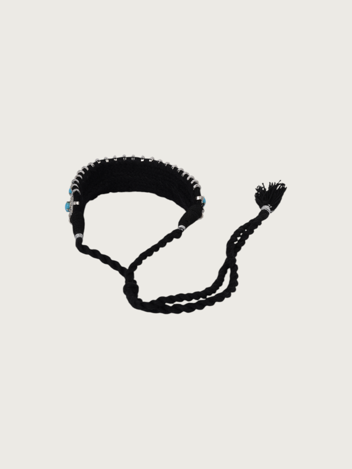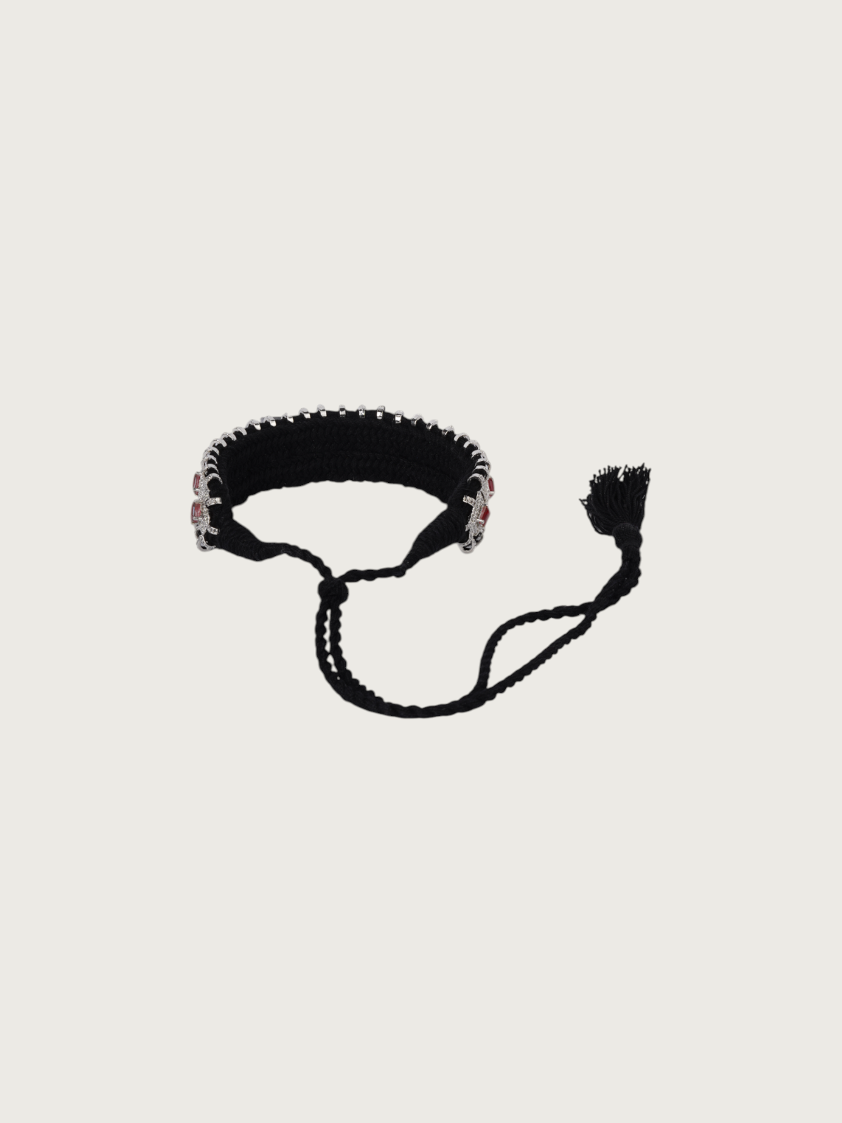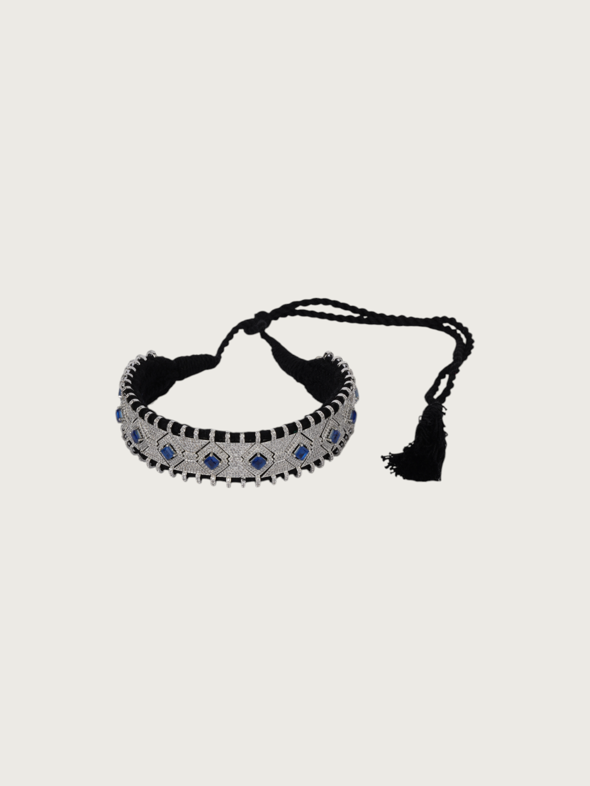 Each piece is strung on a thick cotton adjustable thread in coordinating hues, giving you both structure and comfort. The adjustable thread tassel closure ensures a secure yet flexible fit, whether worn as a statement piece or layered with longer necklaces.