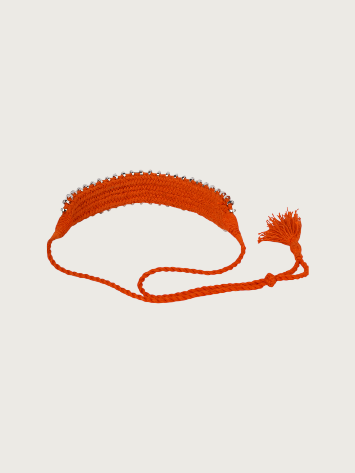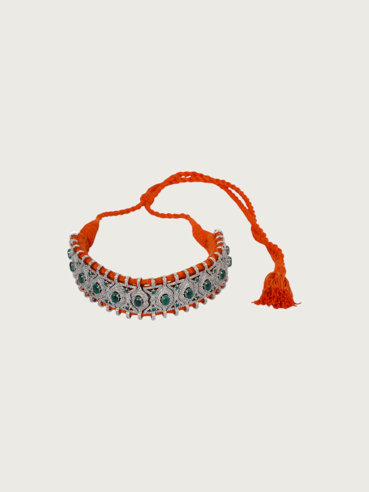 Every choker is strung on soft cotton threads in a spectrum of hues like black, green, purple, mustard, orange, and ivory, giving each necklace a unique personality. The adjustable thread-tie closure ensures a comfortable fit for all neck sizes and adds a raw, handmade charm to the piece.