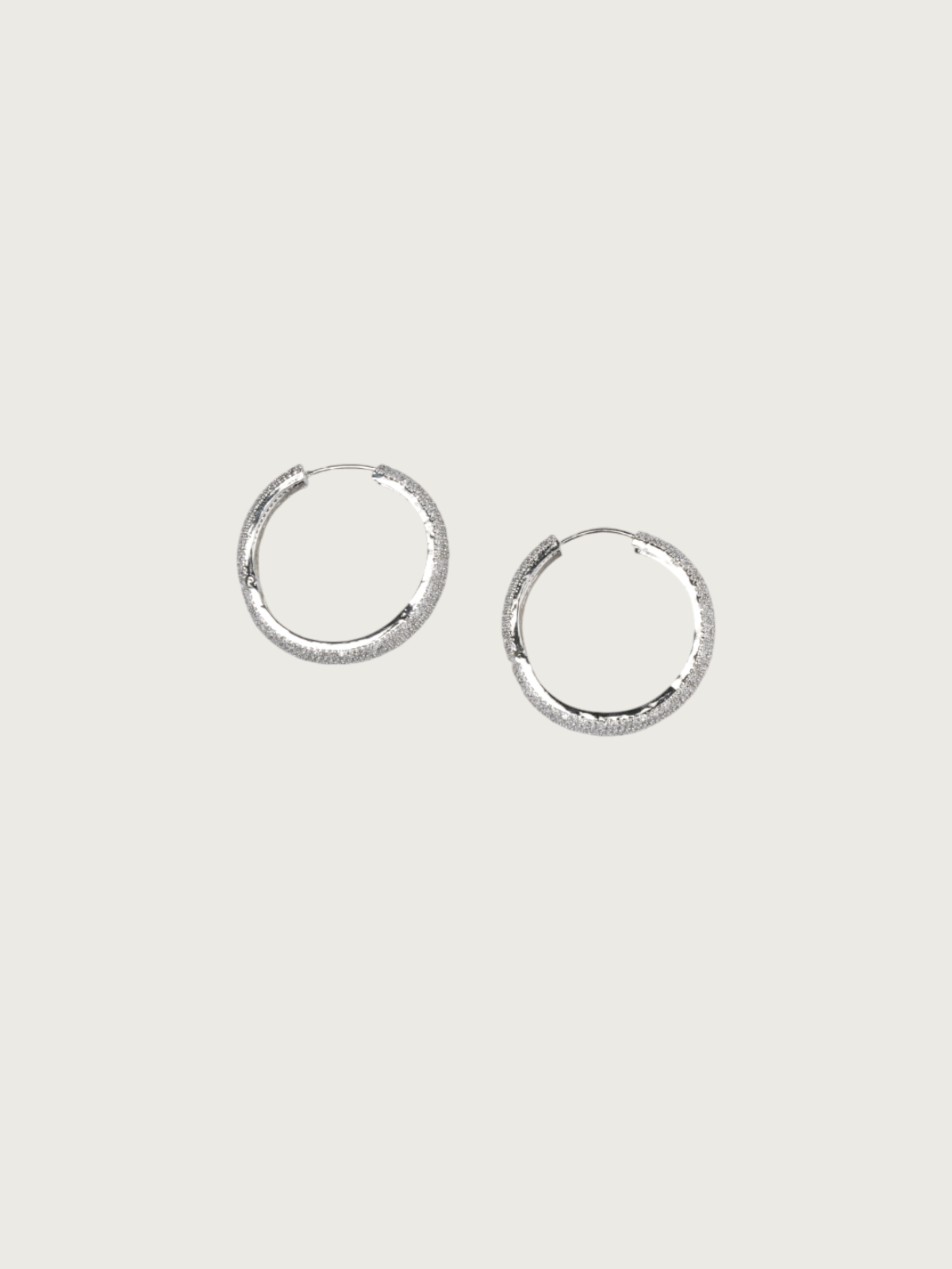 Elegant yet understated, these silver-toned hoop earrings bring timeless charm with a modern twist. The delicate micro-textured surface reflects light effortlessly, adding a subtle shimmer that enhances their everyday appeal. Crafted with a refined polish and detailed with fine texture all around, these hoops strike the perfect balance between minimalism and sophistication. Lightweight and versatile, they’re your go-to pair for workwear ease or casual flair.