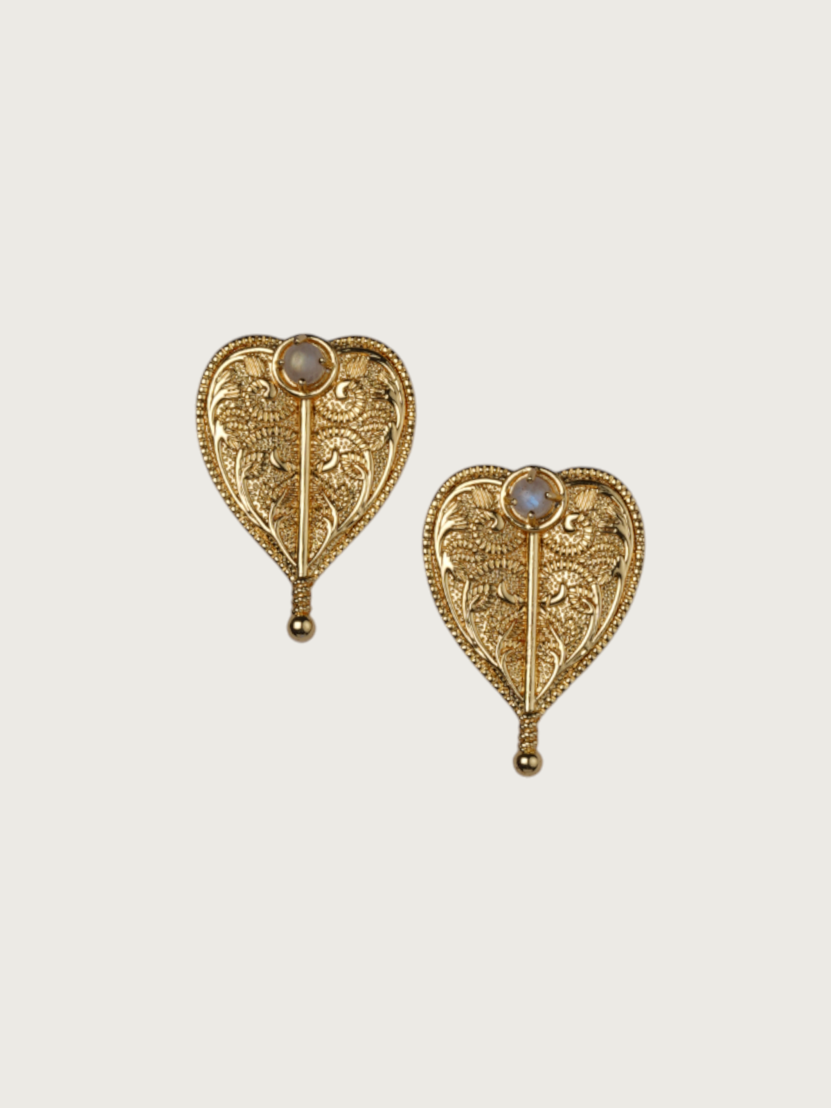 Celebrate timeless craftsmanship with these gold-plated hoop earrings inspired by ancient architectural elements. Featuring arched window motifs etched in fine detail, each earring captures the grandeur of heritage design. The high-polish finish enhances their regal appeal, while the clean silhouette ensures they remain versatile and wearable for modern-day styling. Whether paired with traditional wear or contemporary ensembles, these earrings offer a bold yet refined accent.