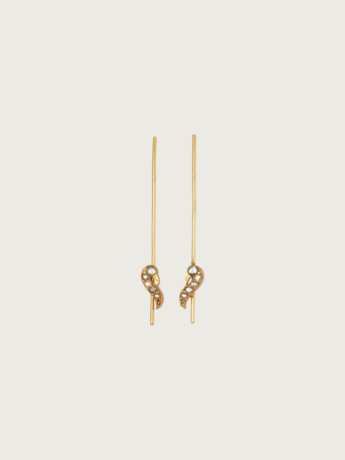 Ces boucles d'oreilles modernes en plaqué or apportent une touche de minimalisme et de sophistication à votre look. Dotées d'un élégant motif incurvé orné de pierres blanches, elles offrent un design unique, léger et élégant au quotidien. Portées seules ou avec d'autres bijoux, elles ajoutent une touche de luxe contemporain à votre collection d'accessoires.