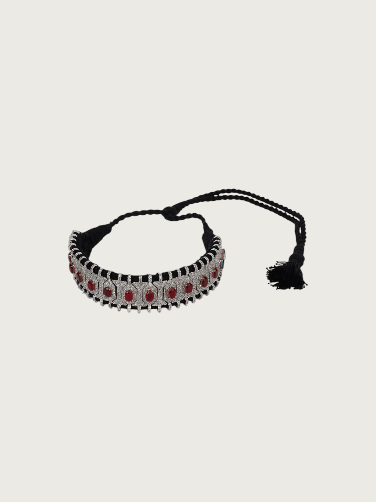 The thread tie-up design not only adds a soft contrast to the shimmer of the stones but also ensures flexible styling. Whether worn as a snug choker or relaxed mid-length necklace, the adjustable thread allows for personalized comfort and fit.