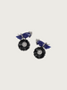 Each pair is crafted on a silver-toned base and enhanced with miniature stone settings that frame the flower centers with a twinkle. Whether you opt for the soft mauve pairing or the bold contrast of midnight blue and black, these earrings are perfect for those who love statement pieces that feel alive with character.