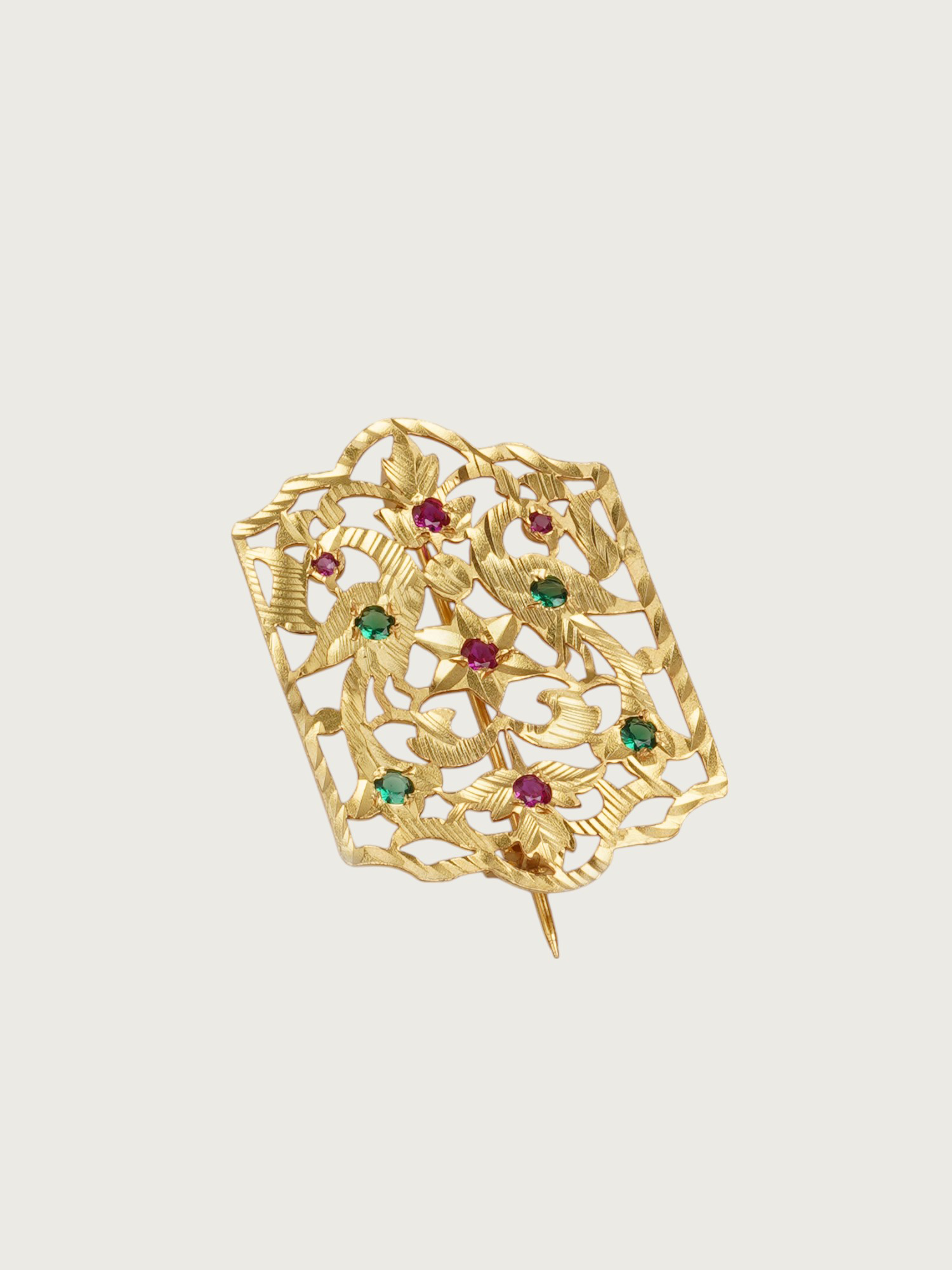 The Regal Vine Brooch by Tver features intricate vine patterns adorned with vibrant accents, inspired by the elegant motifs of royal Indian jewelry. Handcrafted in 925 Silver, this brooch adds a timeless charm to any look.