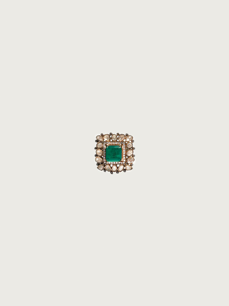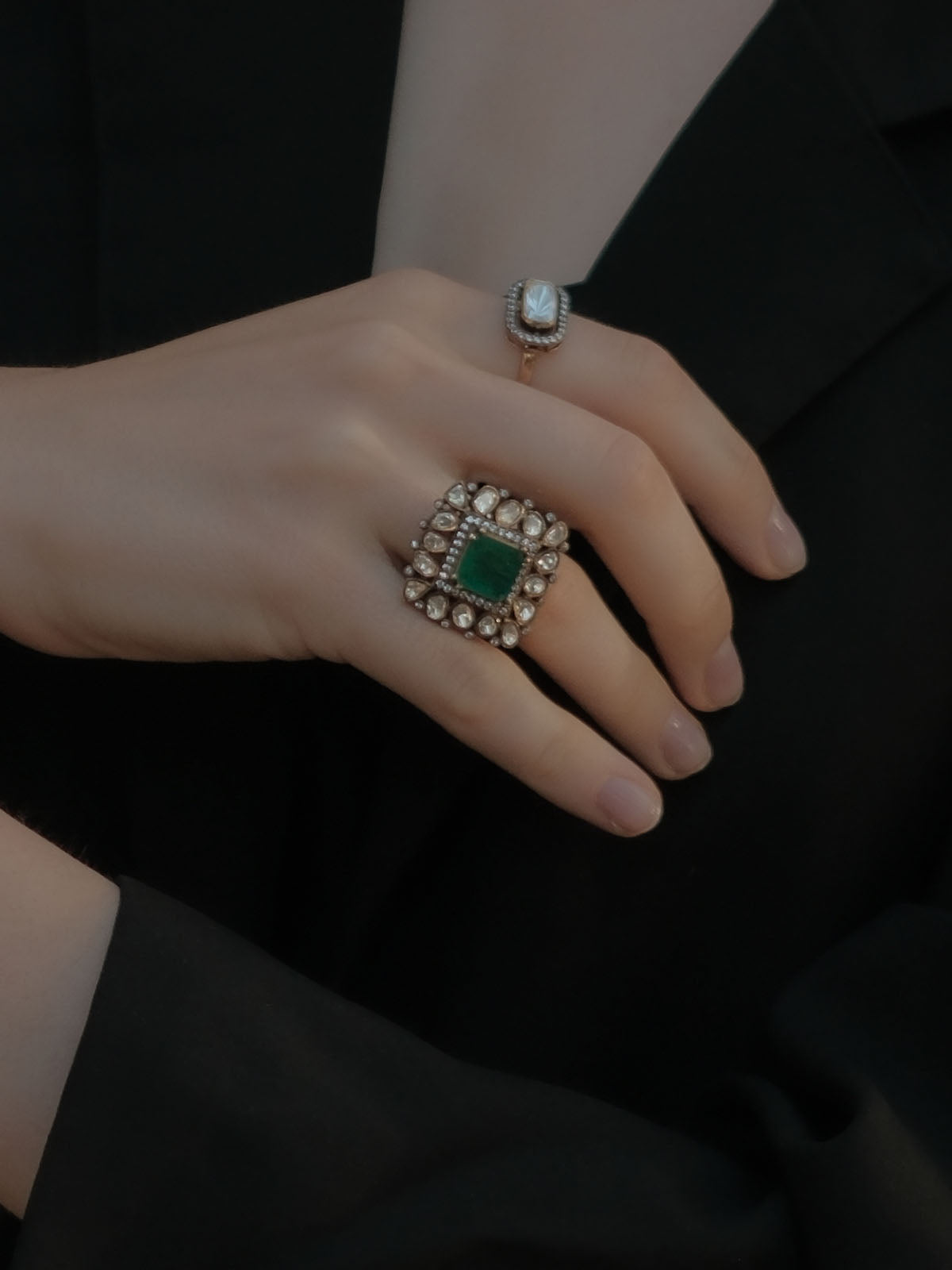 💚 Own a timeless piece of art with this emerald and polki ring, designed for those who love elegance and grandeur!
