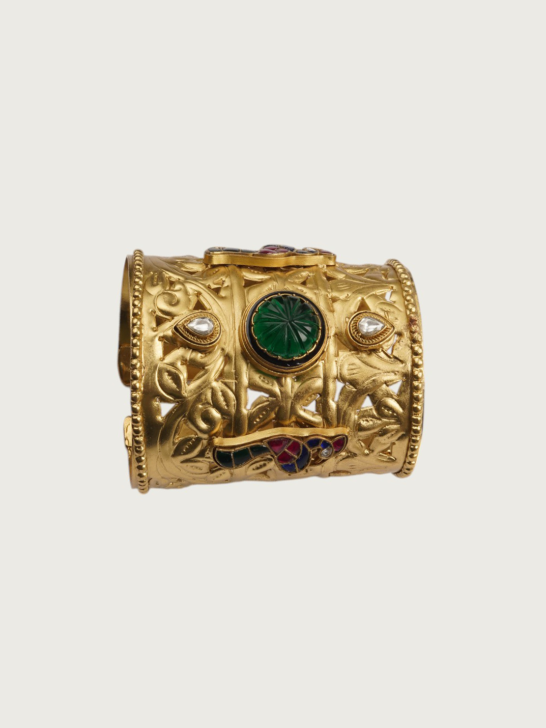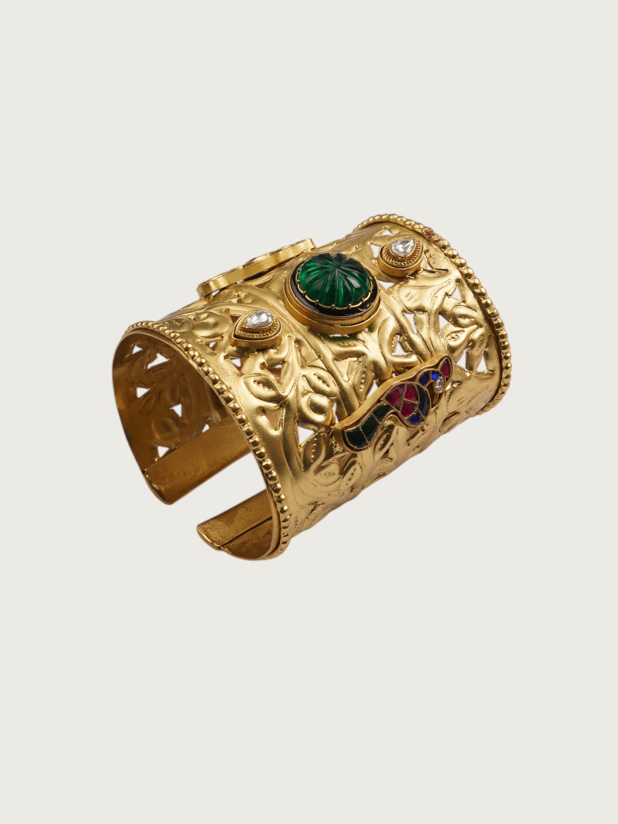 Embrace the grandeur of Indian heritage with the Regal Mughal Cuff Bracelet, a stunning piece inspired by royal heirloom jewelry. Designed to reflect the opulence of Mughal and Indian aristocracy, this handcrafted bracelet features intricate floral engravings and a bold, vintage-inspired centerpiece. Made with high-quality material and adorned with meticulously detailed accents, this statement cuff is perfect for those who love timeless, classic jewelry with a modern touch.