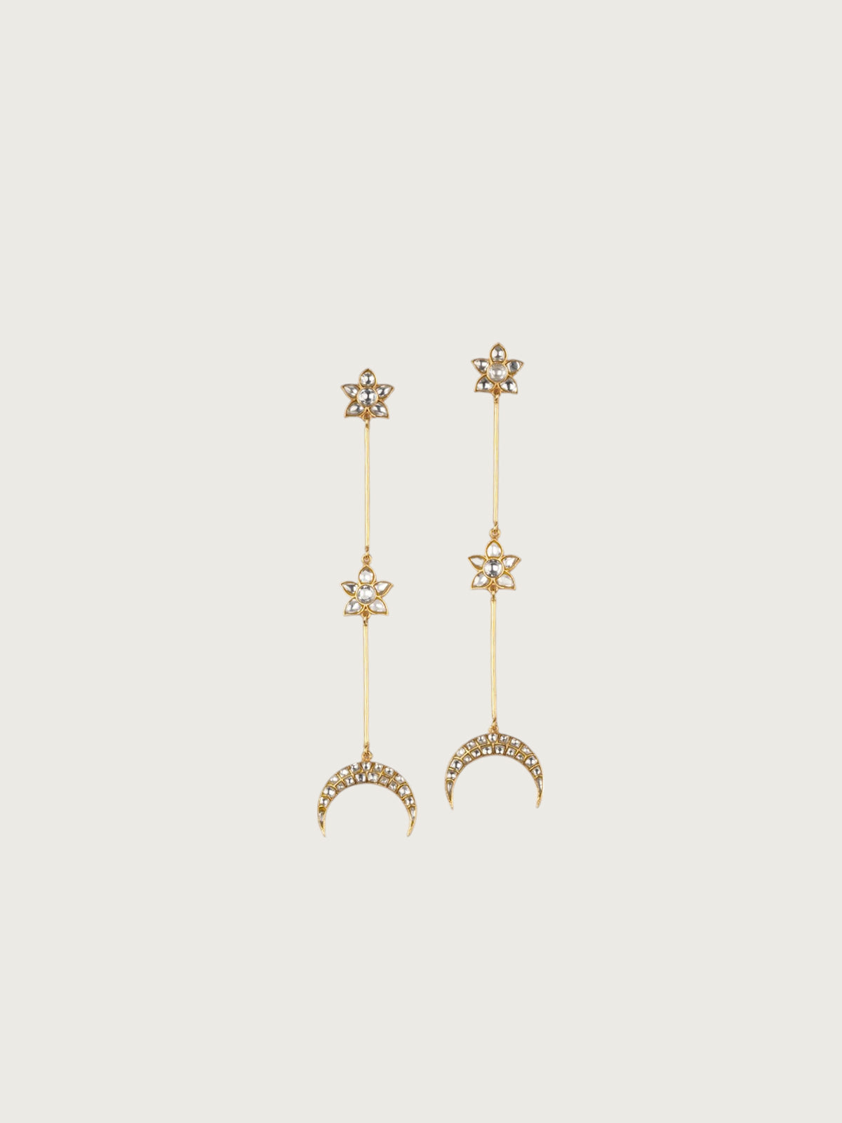 • Exquisite celestial-themed earrings featuring shimmering stars and crescent moons.