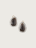 A sophisticated pair of handcrafted drop earrings featuring faceted stones framed in delicate diamond-like halos. The collection includes two elegant variations — one with brown-toned oval stones, and another with grey teardrop stones — each radiating understated glamour.