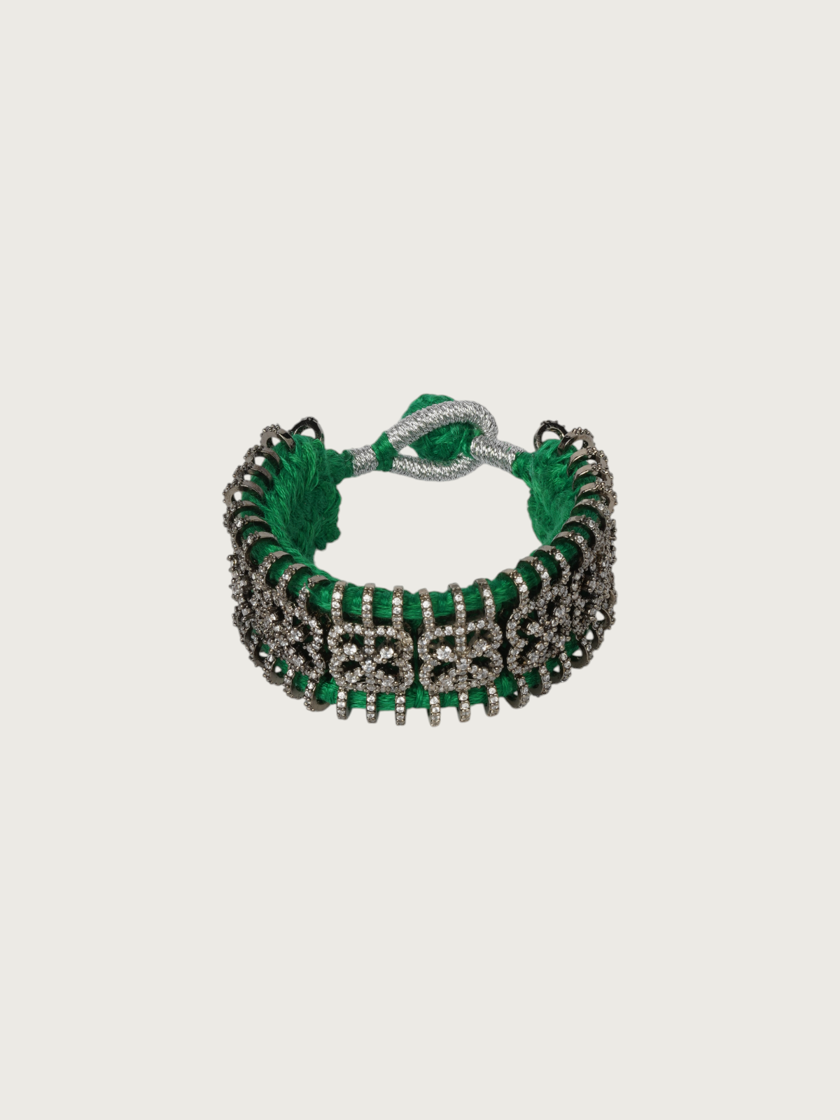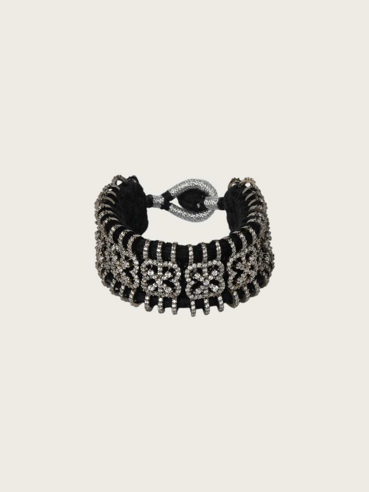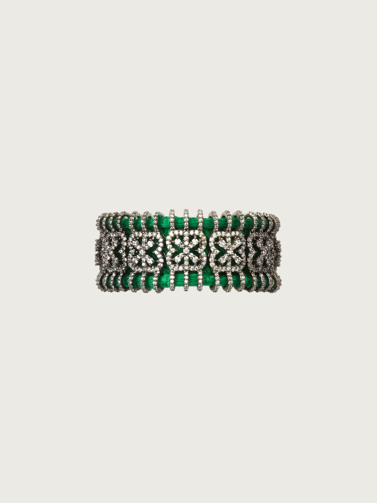 Bring vibrancy and elegance to your wrist with these handcrafted multicolor thread bracelets, intricately embellished with dazzling stonework. Each bracelet features detailed geometric or floral motifs set in a silver-toned base, woven with rich colored threads like black, pink, green, and more. The result is a striking accessory that marries tradition with a bohemian spirit.