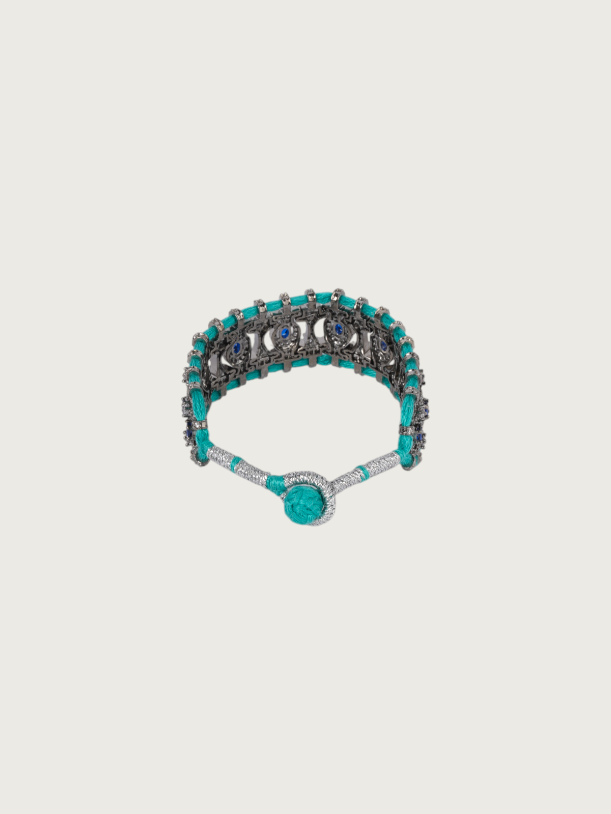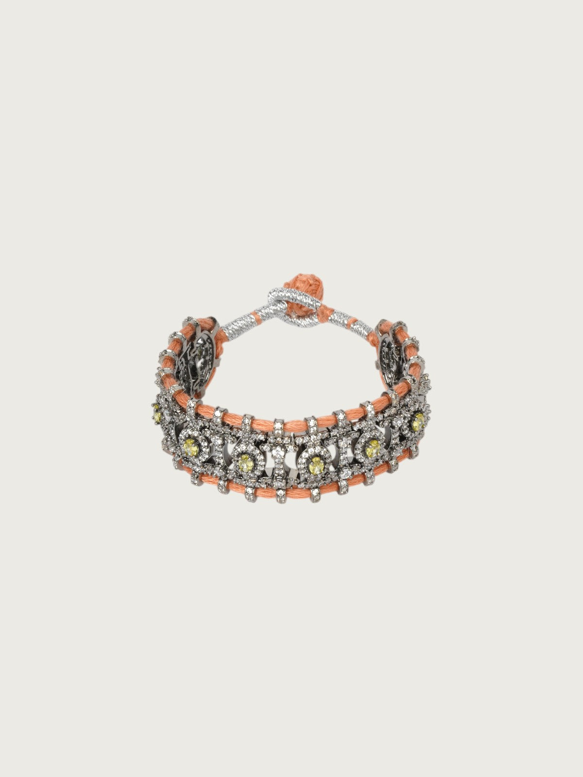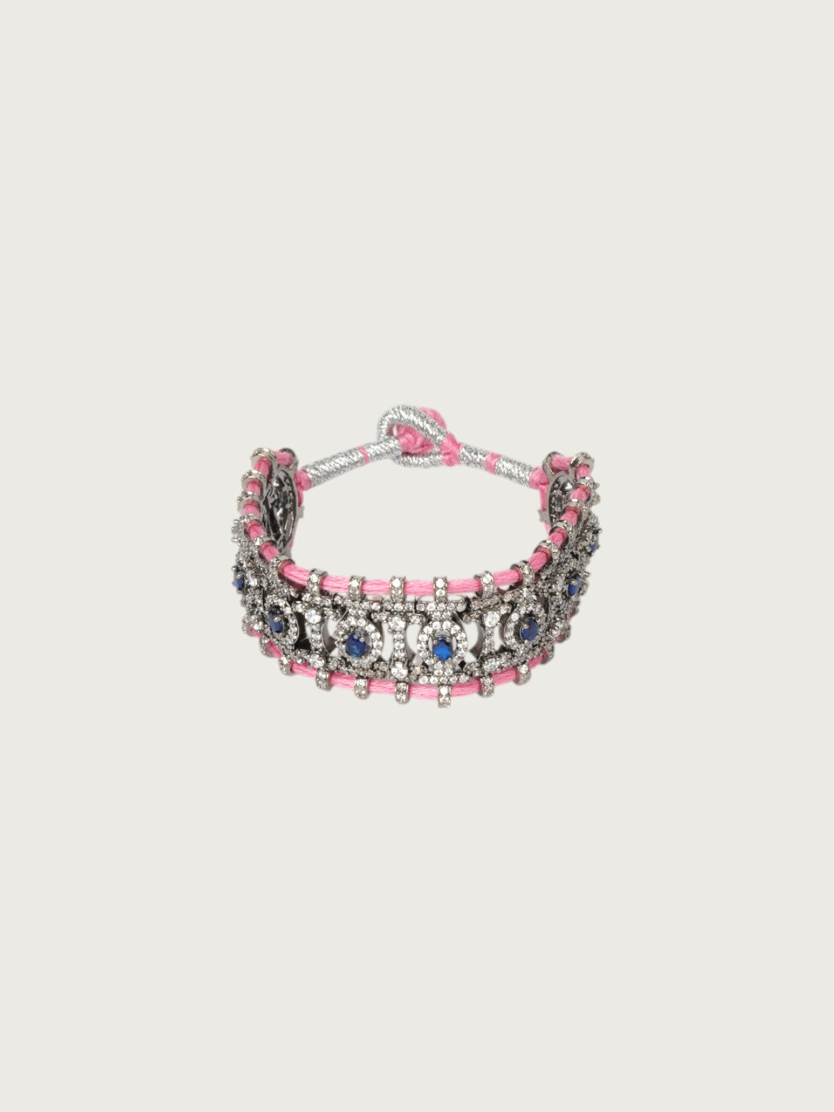 Add a pop of color and a dash of sparkle to your look with our Colorplay Crystal Thread Bracelets. These adjustable bracelets fuse rustic charm with refined craftsmanship, featuring intricate victorian-toned settings encrusted with dazzling crystals. Each piece is threaded with vivid colors—like sky blue, emerald green, lemon yellow, deep sapphire, soft pink, or citrus orange—paired with eye-catching central stones to match.