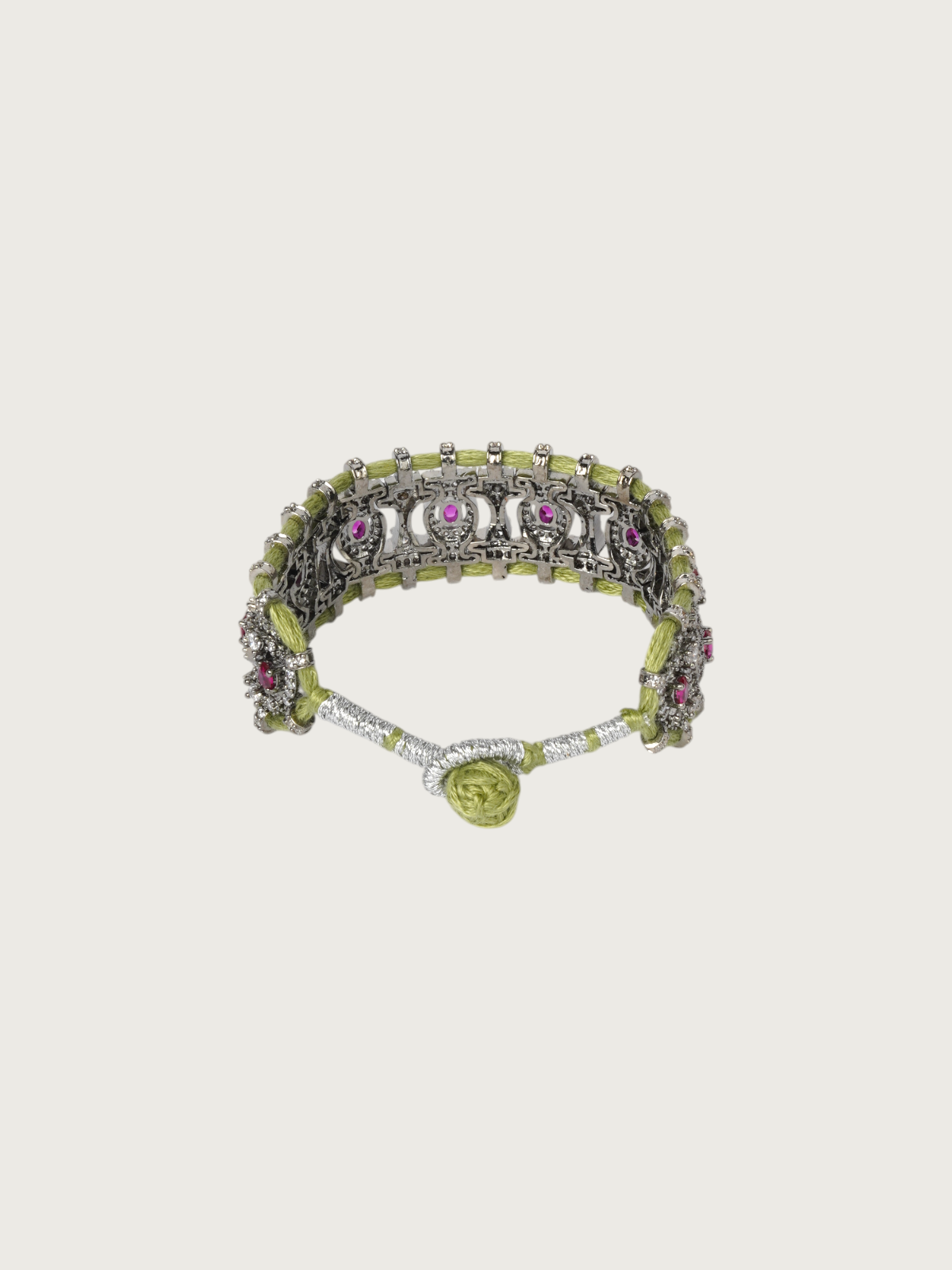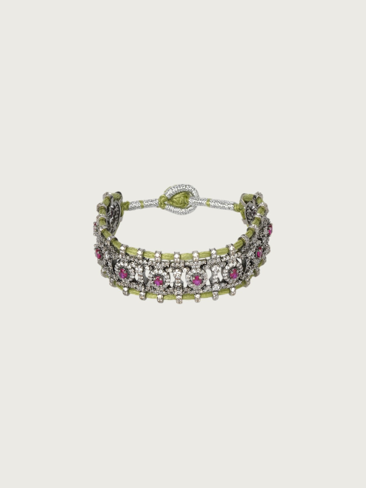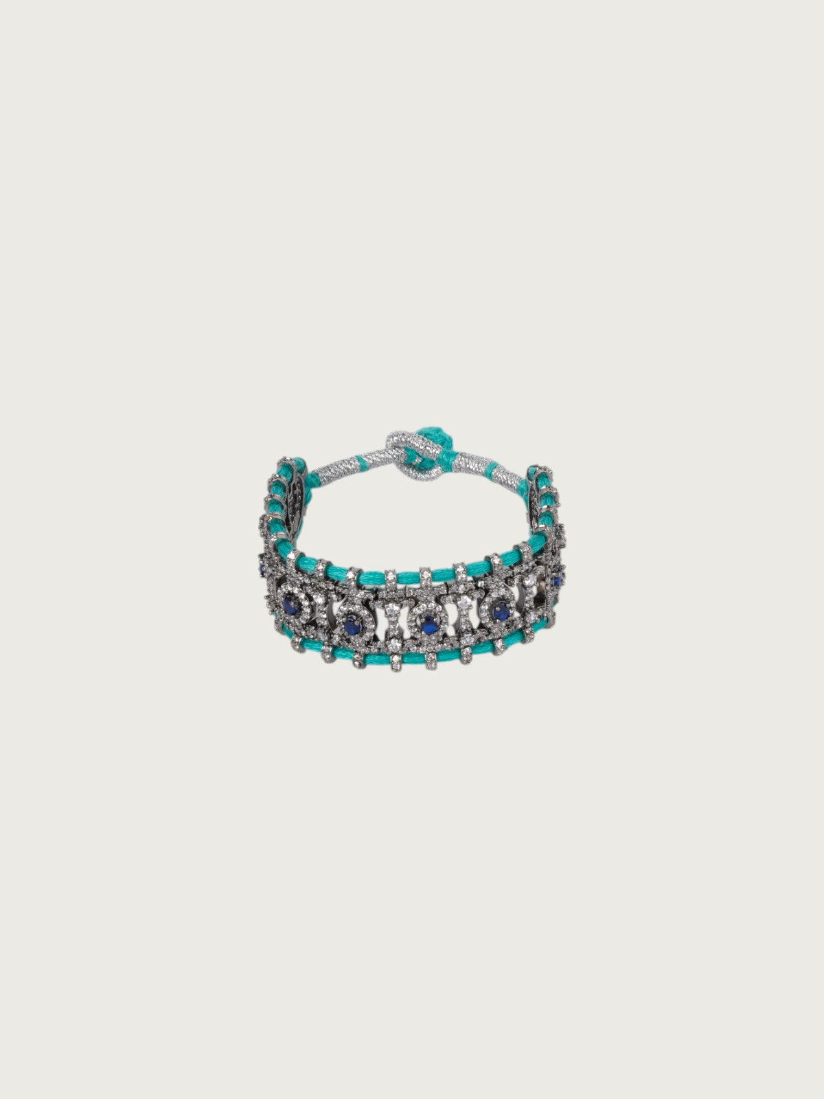 Add a pop of color and a dash of sparkle to your look with our Colorplay Crystal Thread Bracelets. These adjustable bracelets fuse rustic charm with refined craftsmanship, featuring intricate victorian-toned settings encrusted with dazzling crystals. Each piece is threaded with vivid colors—like sky blue, emerald green, lemon yellow, deep sapphire, soft pink, or citrus orange—paired with eye-catching central stones to match.