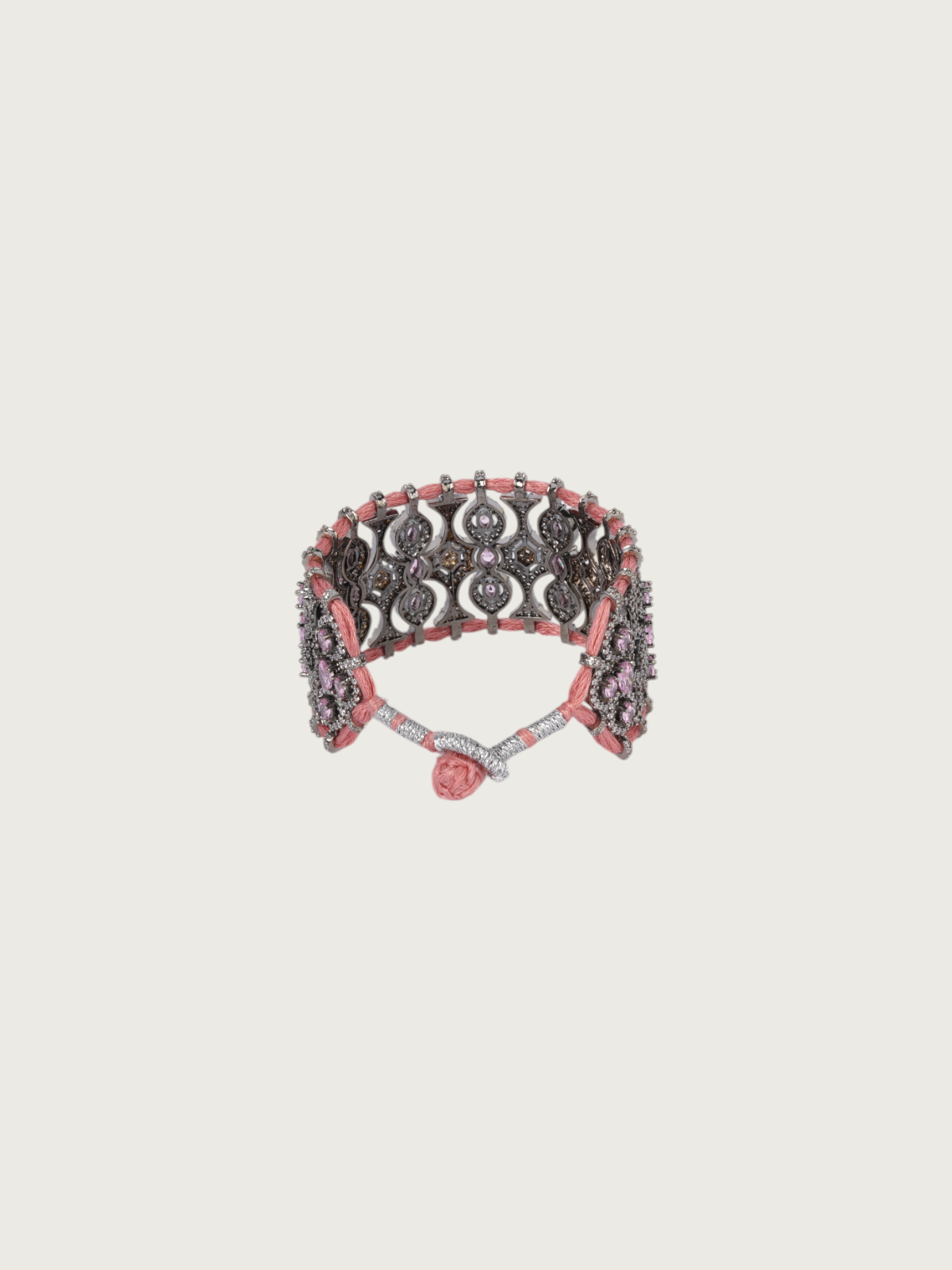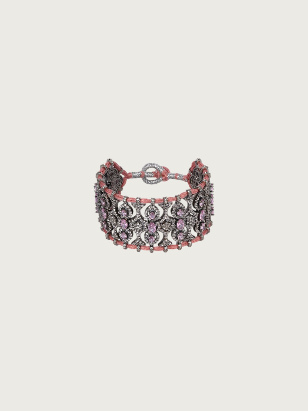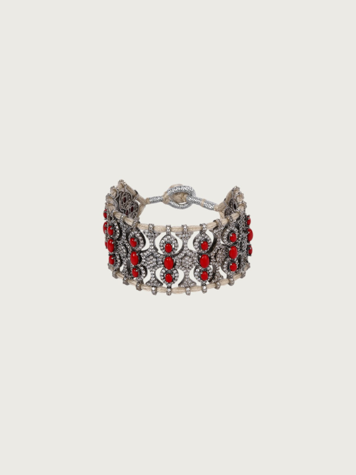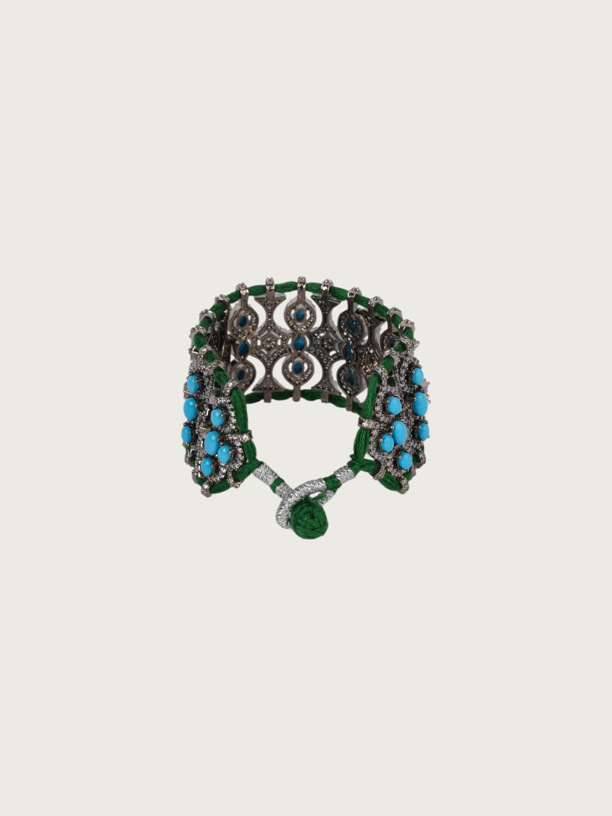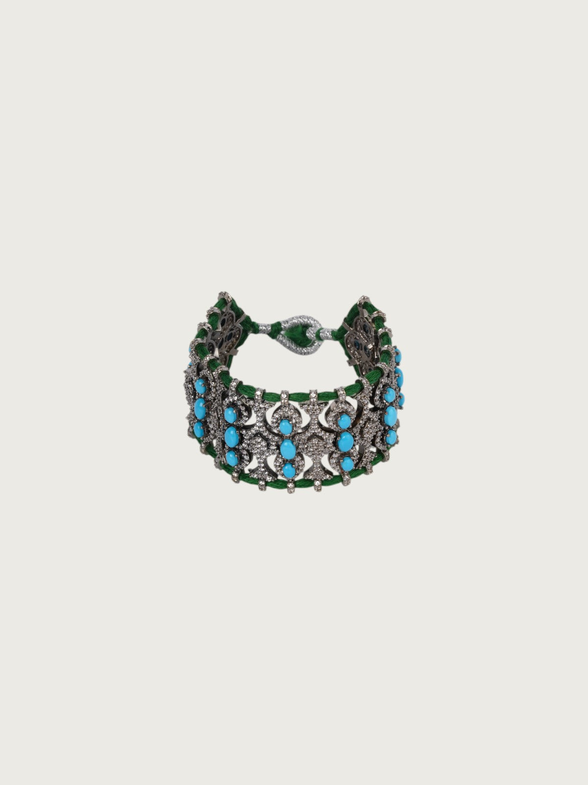 Add a splash of vibrance to your wrist stack with our striking collection of handcrafted thread bracelets, intricately adorned with dazzling stonework. Each piece is woven with precision using vibrant colored threads—ranging from deep greens and electric blues to fiery reds and warm peaches—complemented by high-shine stones set in vintage-inspired victorian-toned bases.
